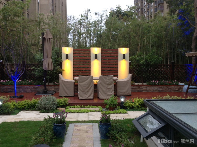 各色的灯光让小院的夜色更加生动迷人。。