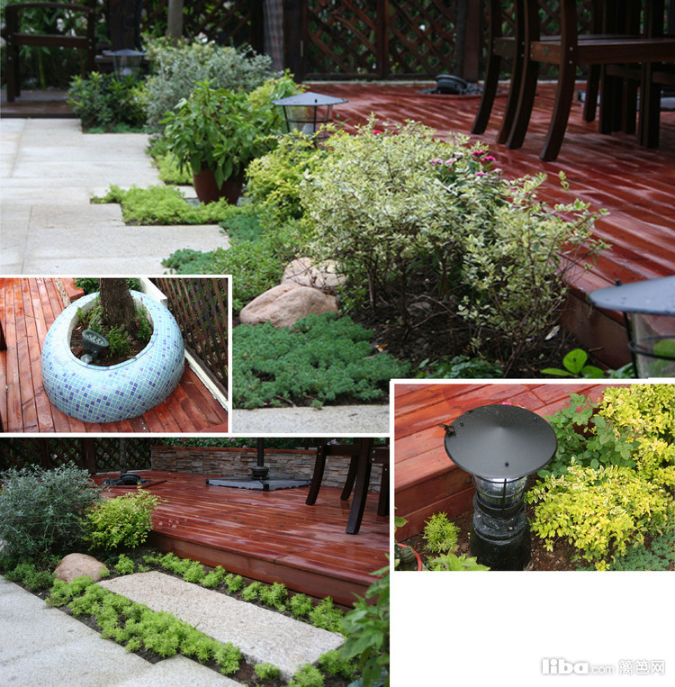 温馨的防腐木休闲区周围布满了各色的花草----是理想的伊甸园。。