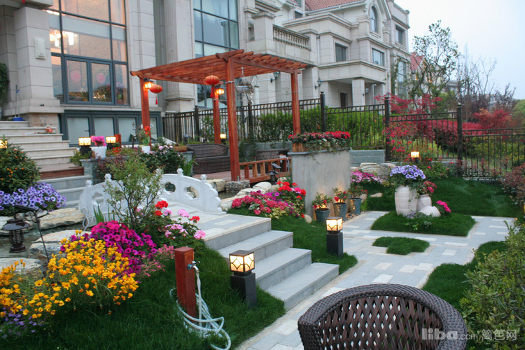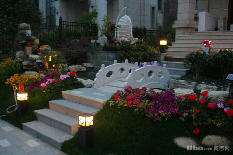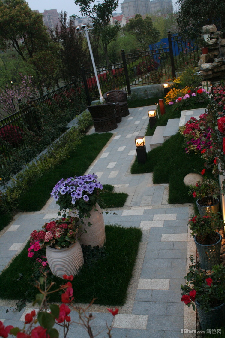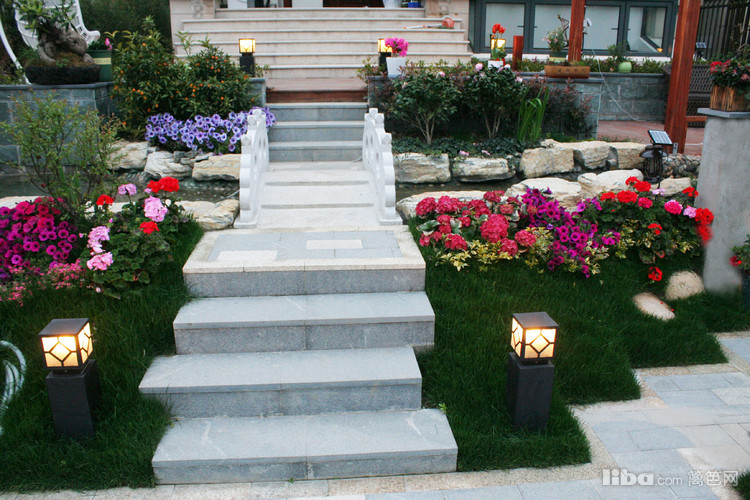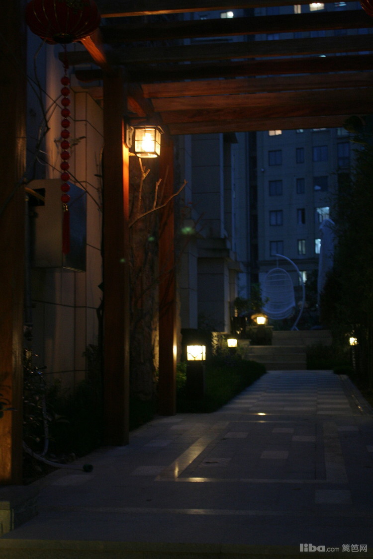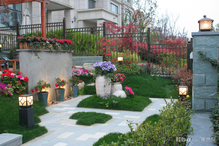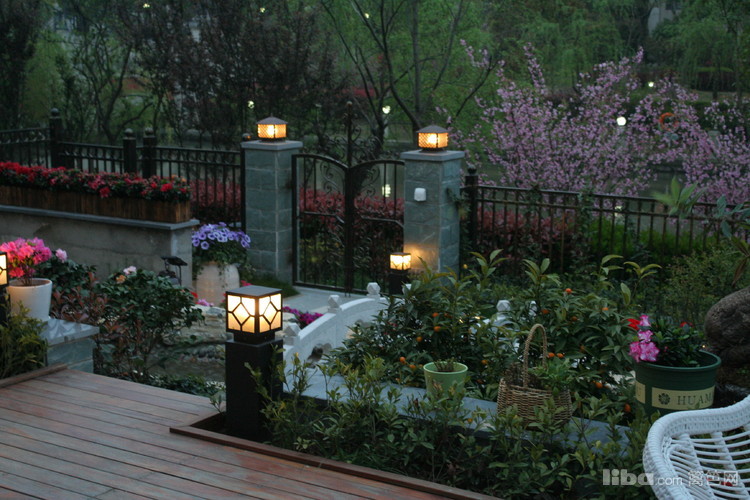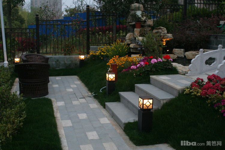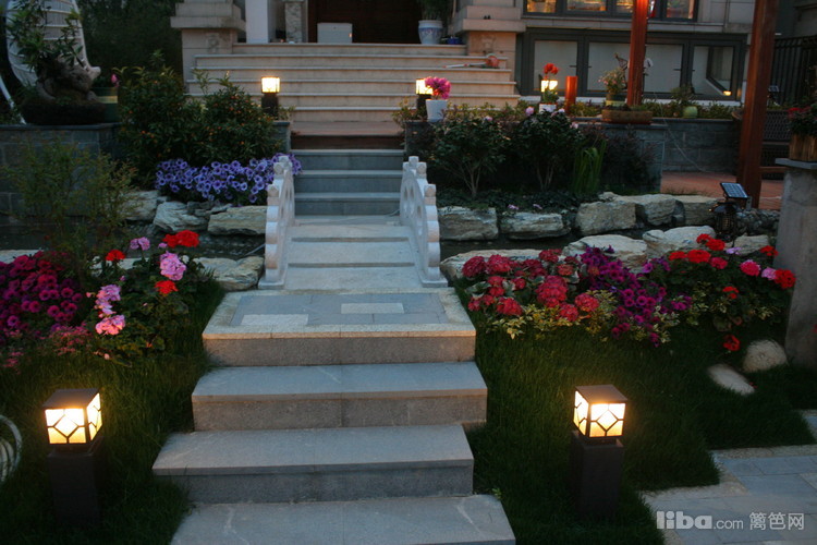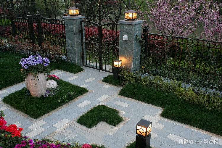 夜晚,边带草坪璀璨的灯光照亮了主人回家的路,更是夜晚最怡人的地方。