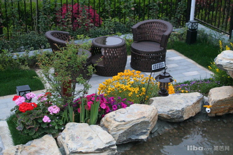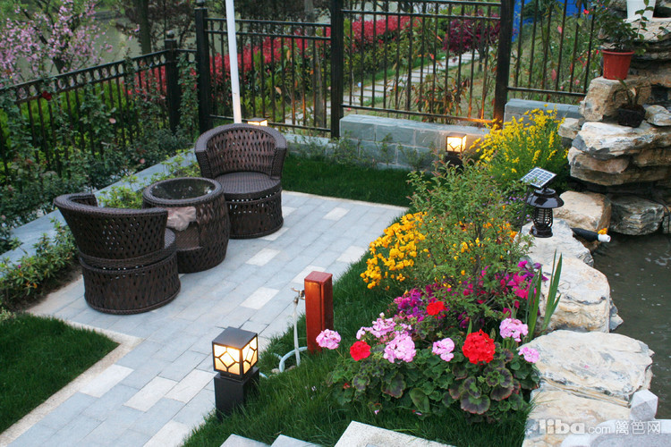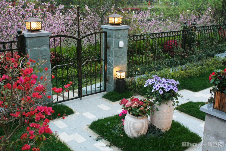 黑色的铁艺壁灯是夜晚纳凉时的必备品,在朦胧的灯光照射下,赏月赏景,别有一番趣味。