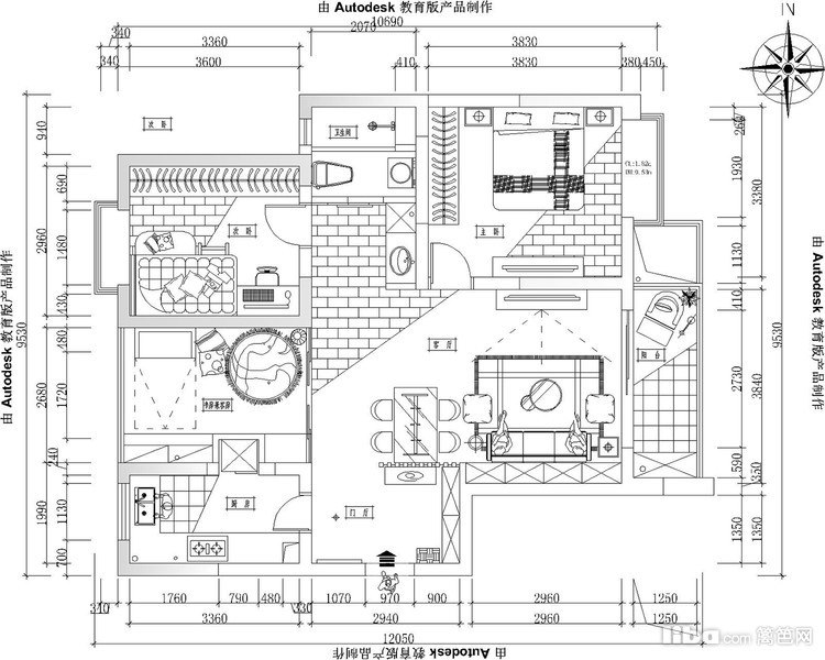改变主卧和主卫的进门方向,使动线更加合理,使用更加便利。