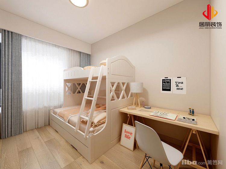 拆除客厅与次卧室的墙体,用半墙加窗户的形式与客厅连接。