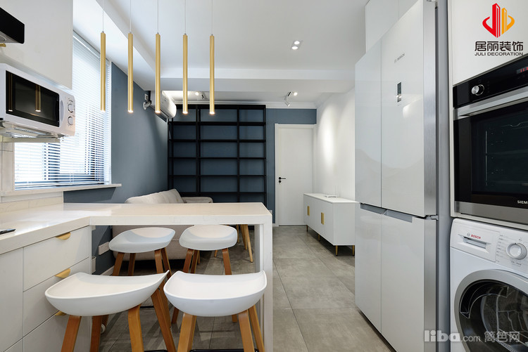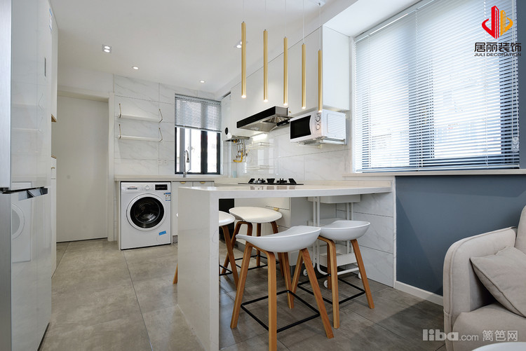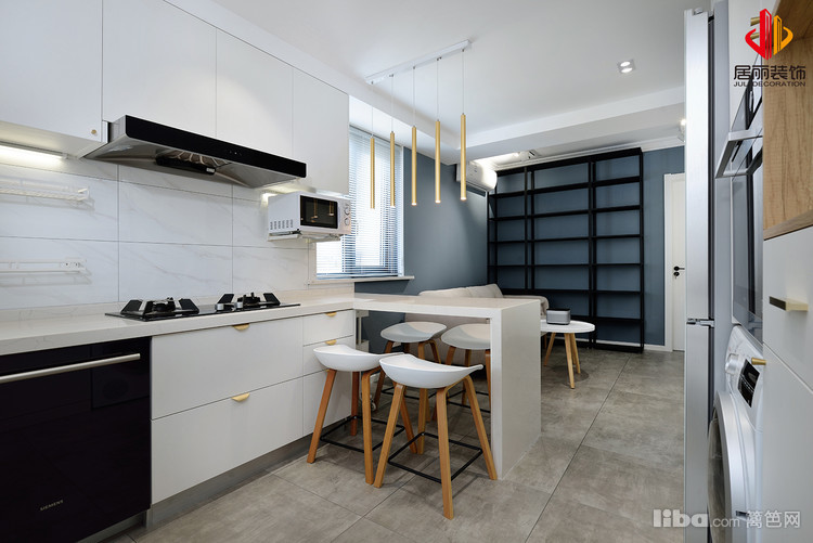 原厨房面积很小,现代化的厨房要求无法满足,所以考虑从空间上扩大厨房,同时兼顾餐厅。