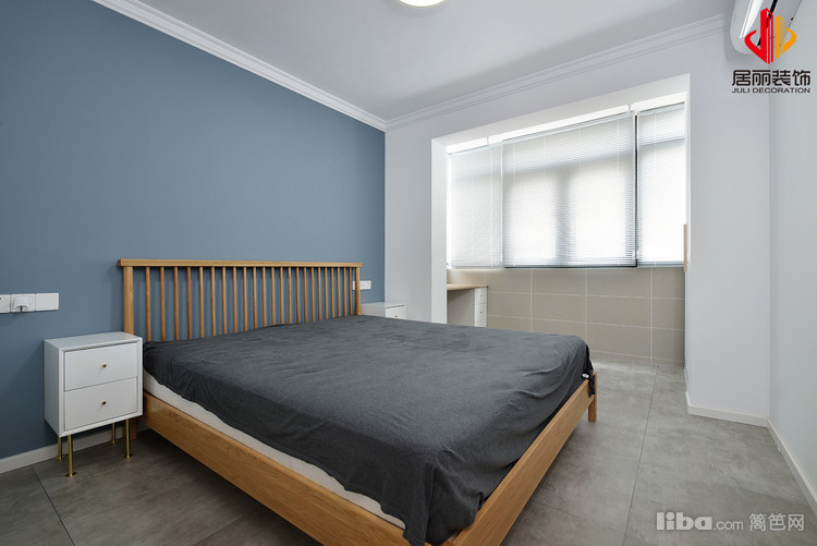 主卧室我们保持功能不变,将其和阳台打通,保证采光和视觉空间。增加休闲功能。