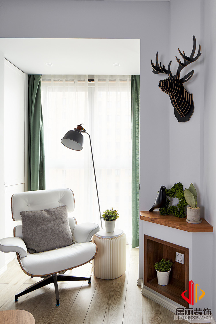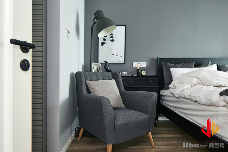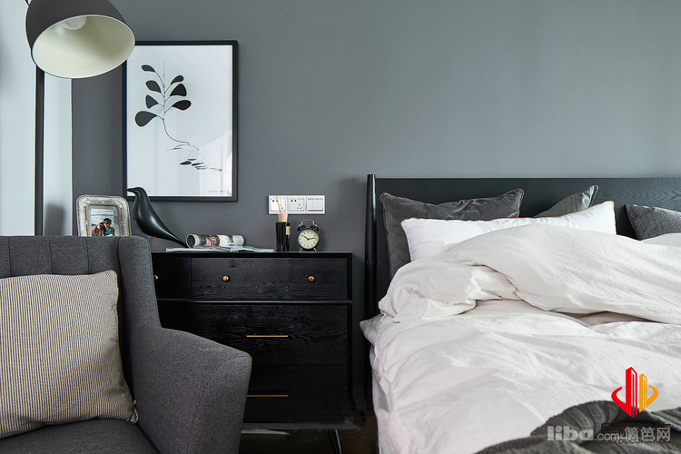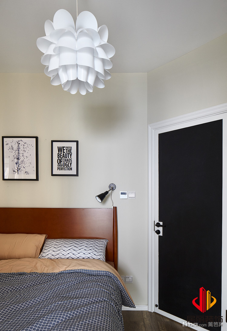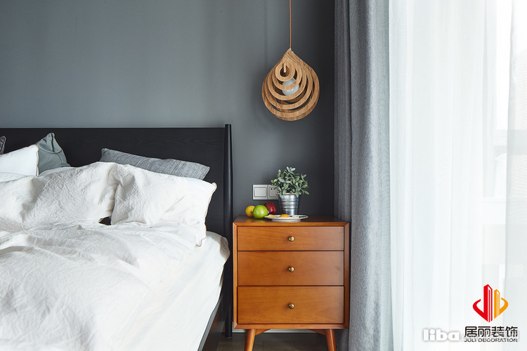 卧室也是北欧风格的元素,床头背景没有过多的装饰,只是灯来做软装的点缀