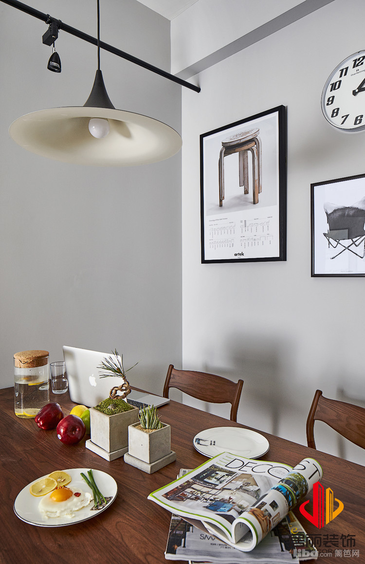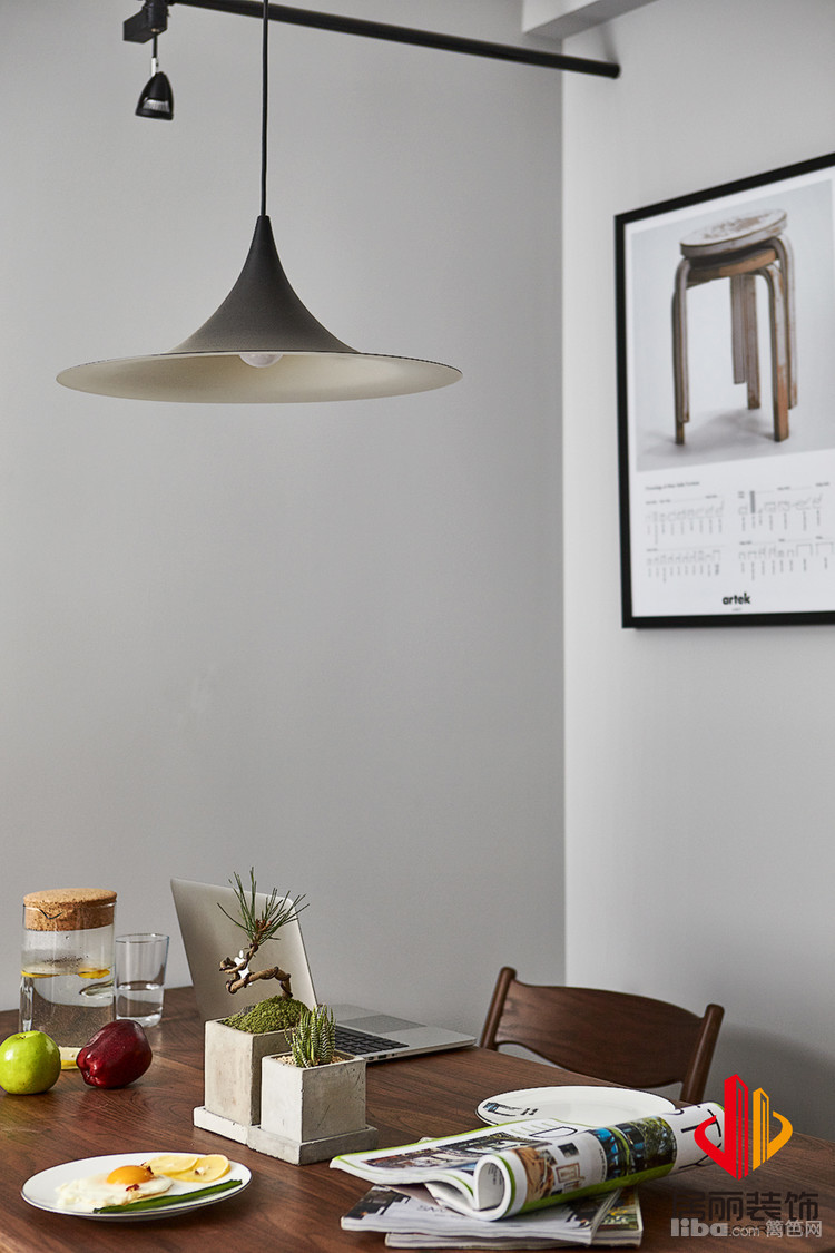墙面采用了质感的墙布。现在主光源慢慢的消失了。因为层高不是很理想,所以利用轨道灯作为点缀。