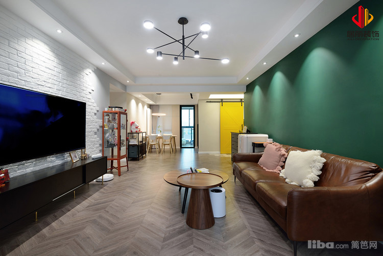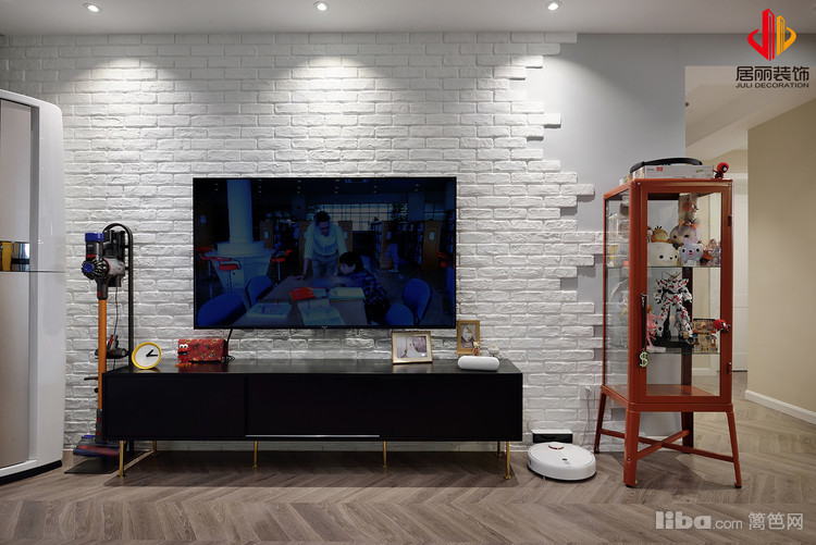 简单摆上基础的家具,女业主喜欢的复古风软皮沙发搭配王德发喜欢的毛绒靠垫,一家三口坐在客厅惬意地看看电视,即使什么也不做也很温馨。客厅的鱼骨纹路地板使简单的家具摆起来也别有一番风味。