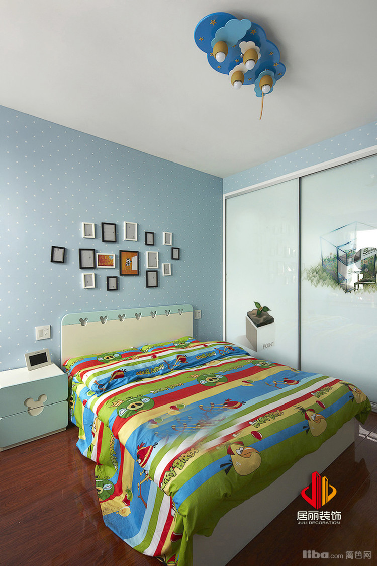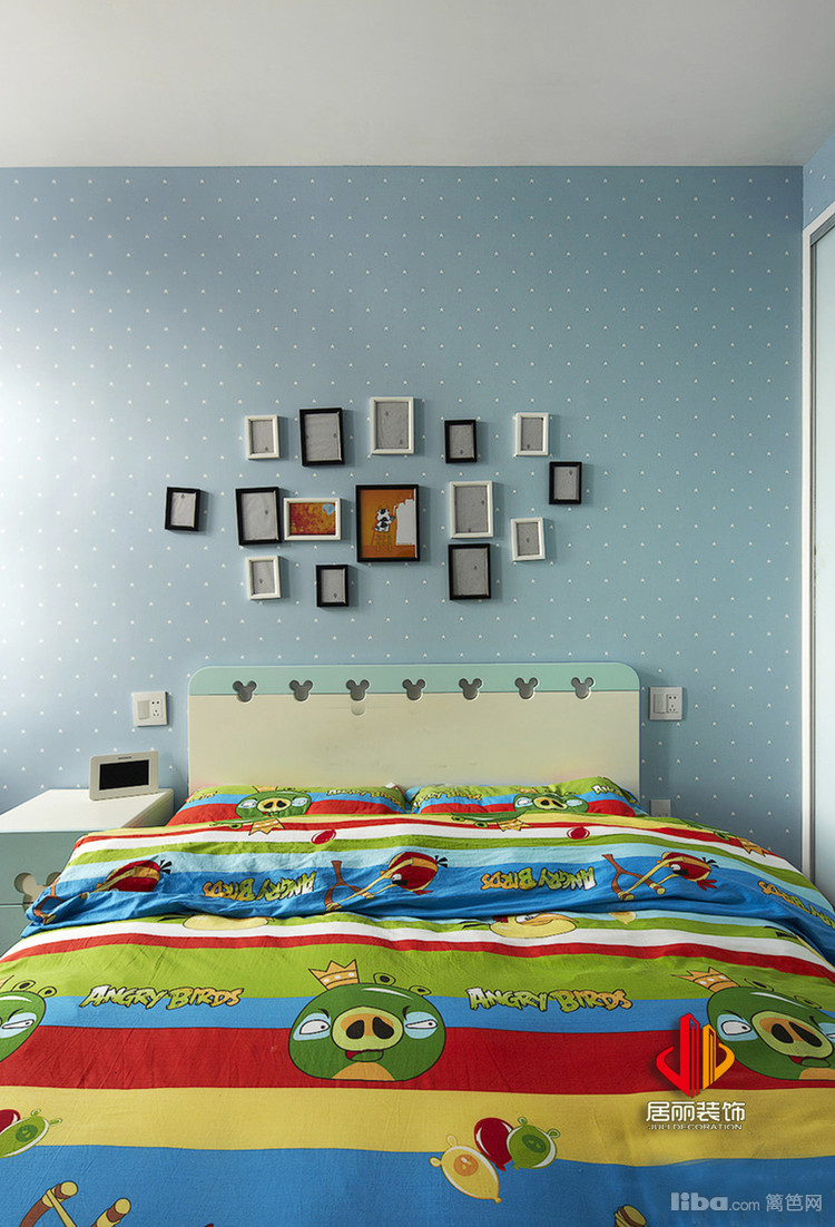 儿童房背景墙采用壁纸,清新自然。
