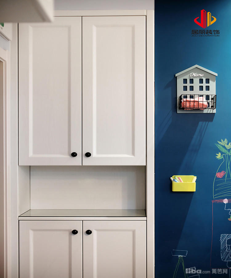主卧以业主的功能需求为主,满足业主较大的储物需求,压缩了卧室的空间,采用高低床来解放空间,保证有小孩子的读书学习空间,和女业主的化妆区