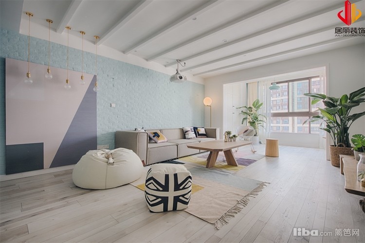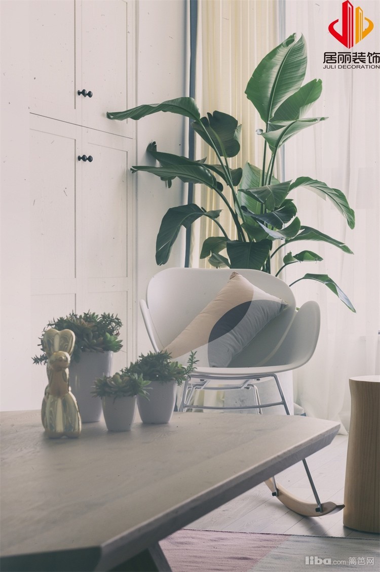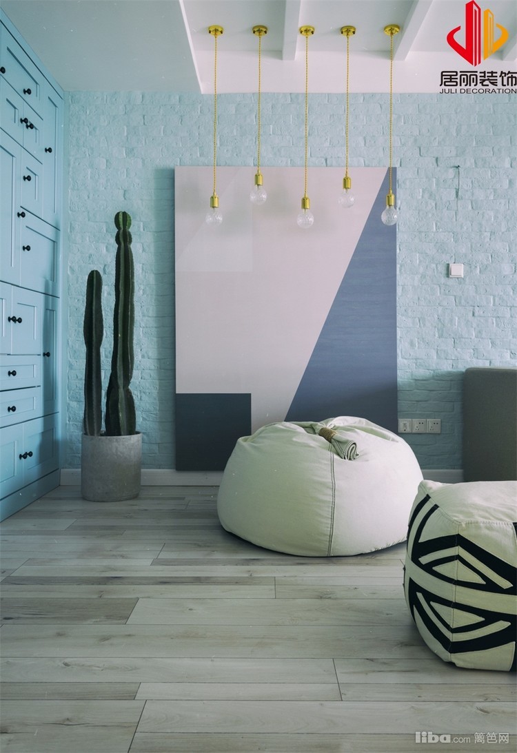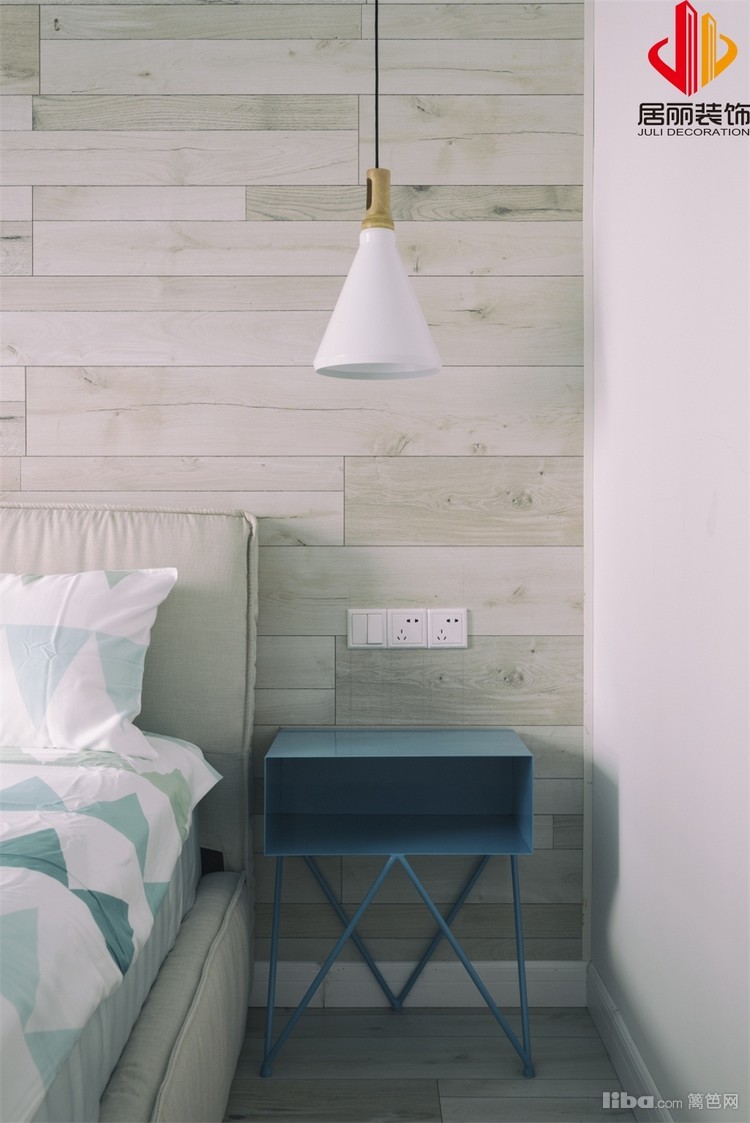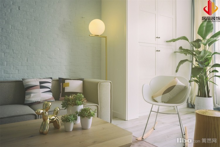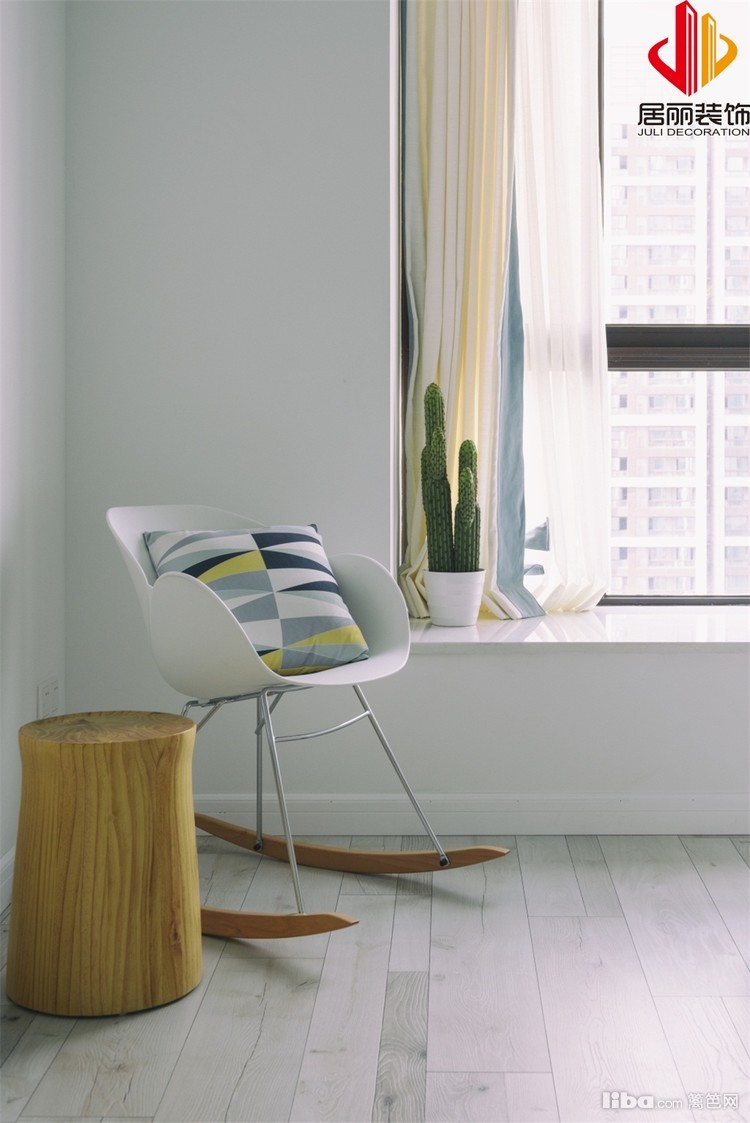 简洁、干练,让家中呈现一种自然的舒适、干净之美。木质地板,白色墙面,一股浓浓的老式北欧范,陪着白色的吊灯,更显明朗与温馨。