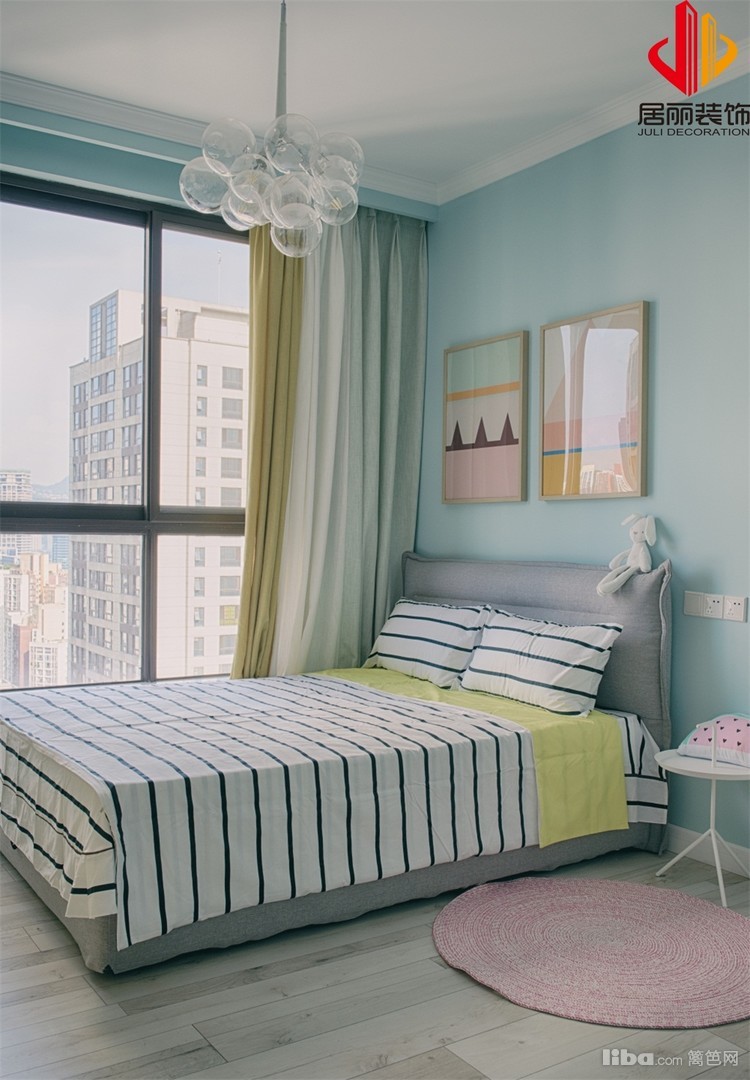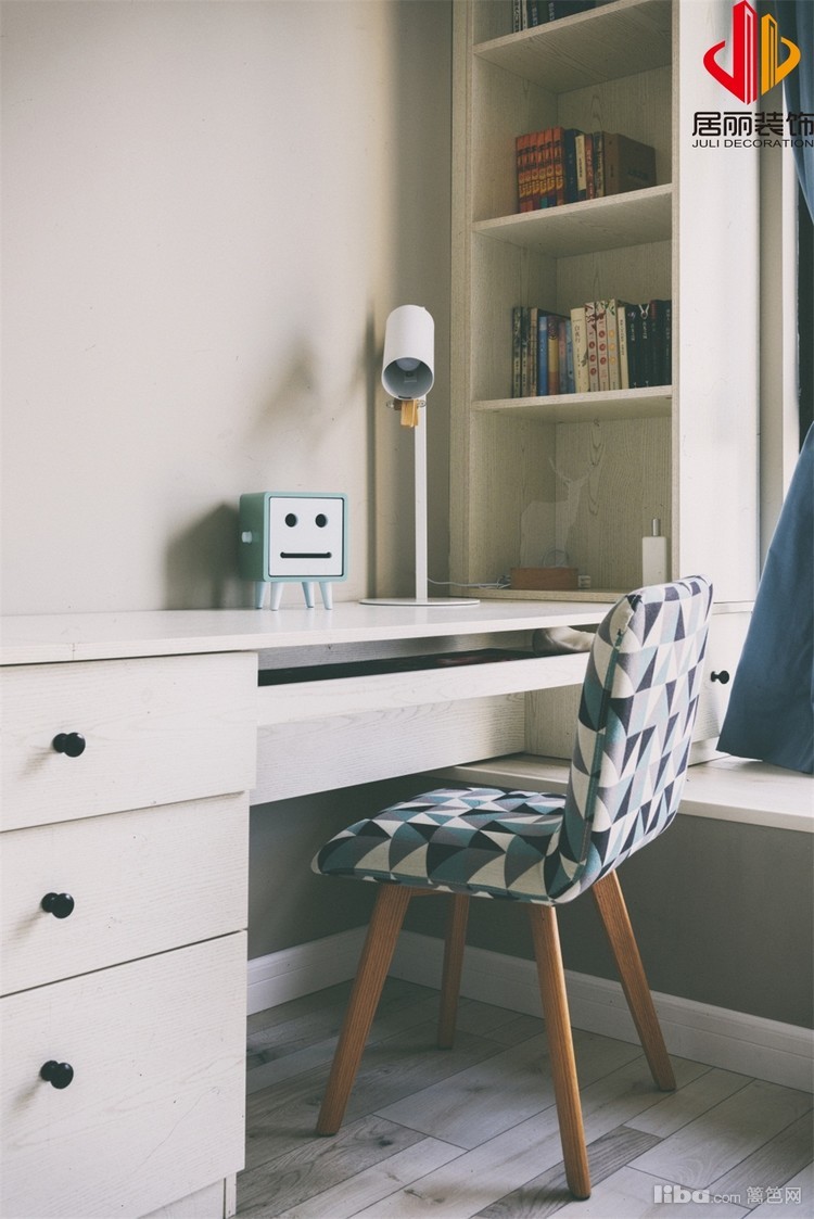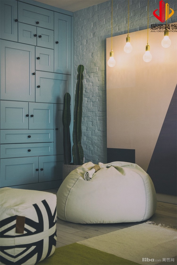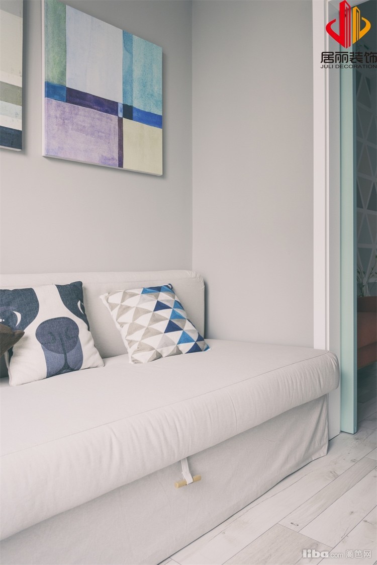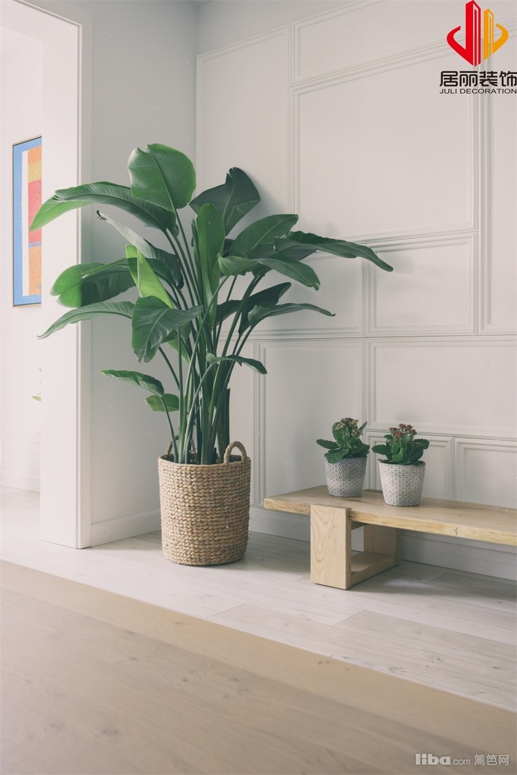 简洁、干练,让家中呈现一种自然的舒适、干净之美。木质地板,白色墙面,一股浓浓的老式北欧范,陪着白色的吊灯,更显明朗与温馨。