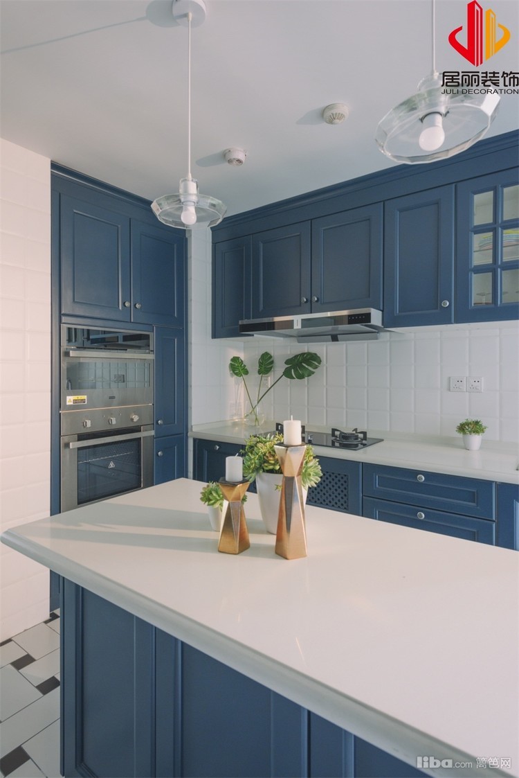 中西厨分离的设计已经成为大多数家庭的需要。上下橱柜颜色为统一色,更凸显层次。餐桌靠着中厨,是一种更方便更现代的生活方式。