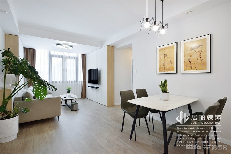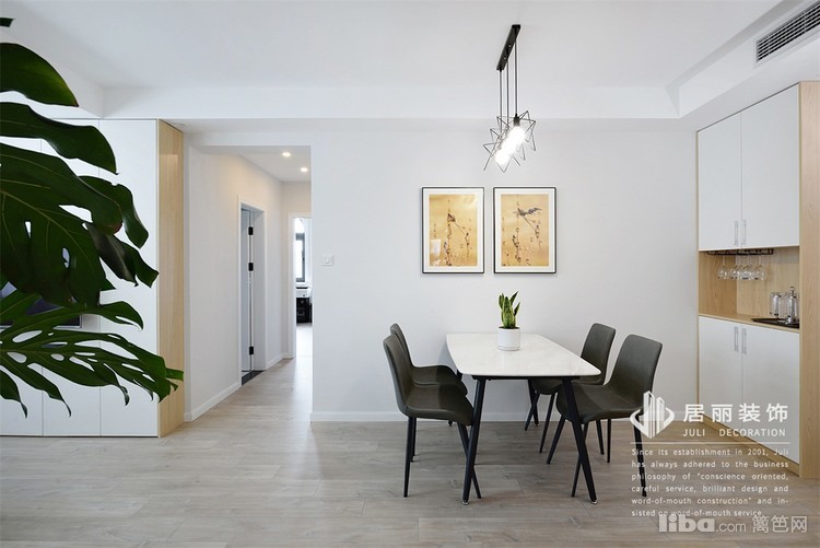 为保证餐厅充足的光线,餐厅和客厅中间没有阻挡,光线也能更多的蔓延进来。