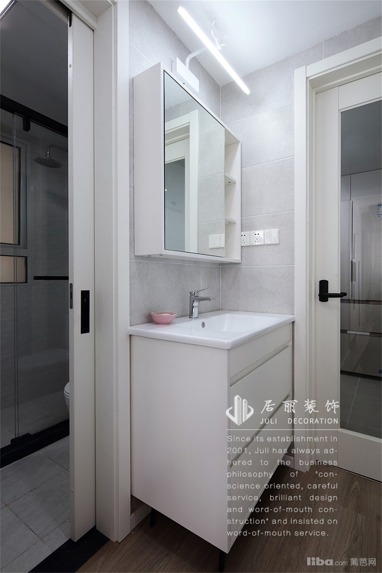 借用走道空间和卫生间有机结合,让走道空间变大,也满足干湿分离需求。