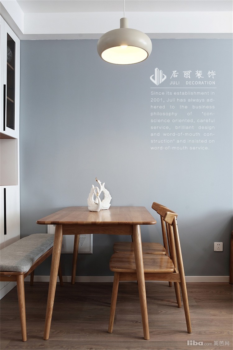 业主家有学龄前儿童,对环保要求比较高,所以用乳胶漆,没有用墙纸和木饰面做背景墙。