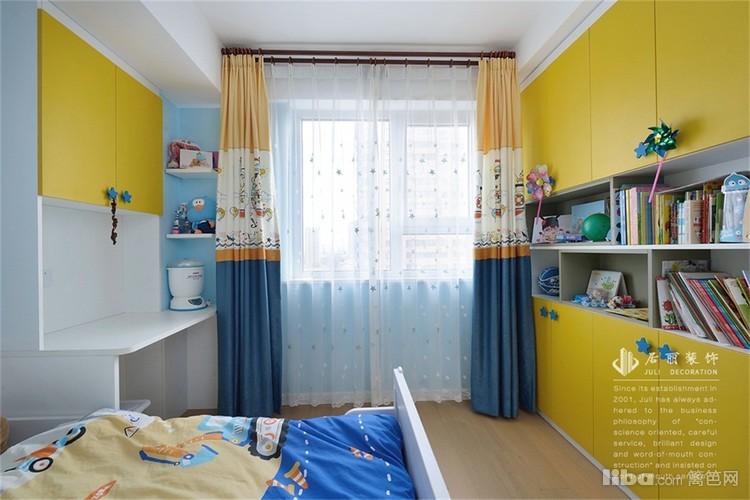 在儿童房的设计上,用简约的蓝色和今年的流行色黄色营造青春活泼氛围,让孩子快乐的成长。
