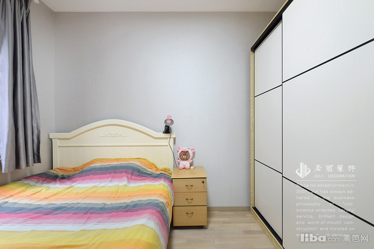 ▪保姆间采用灰色墙布,一张床一面超大储物柜,简洁明了。