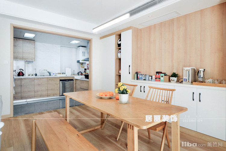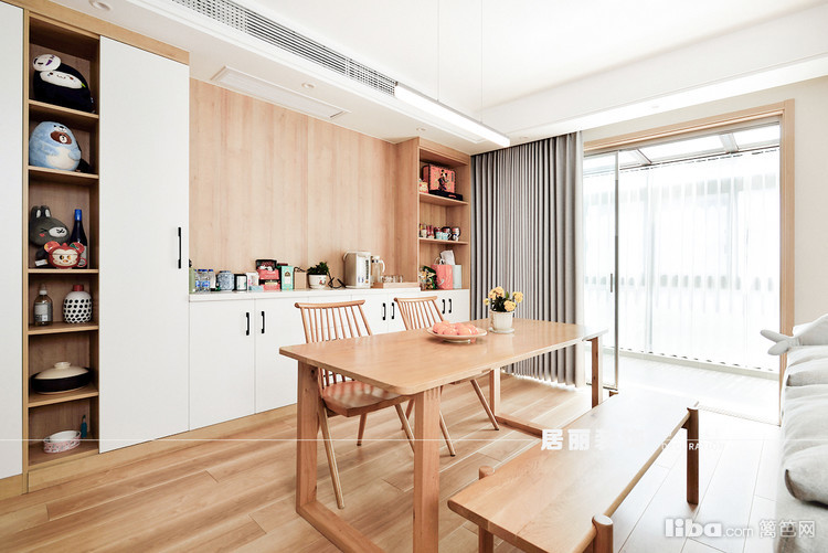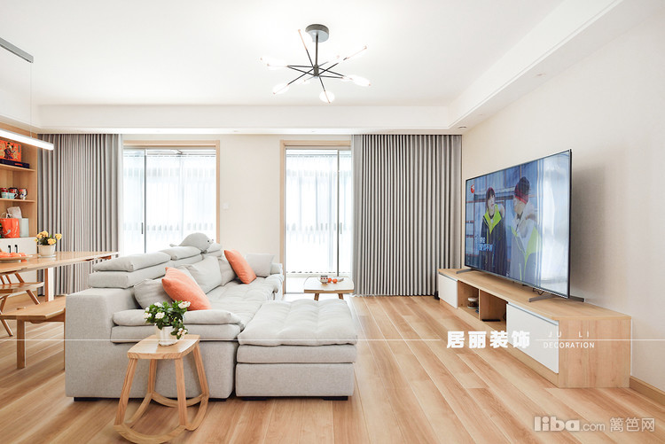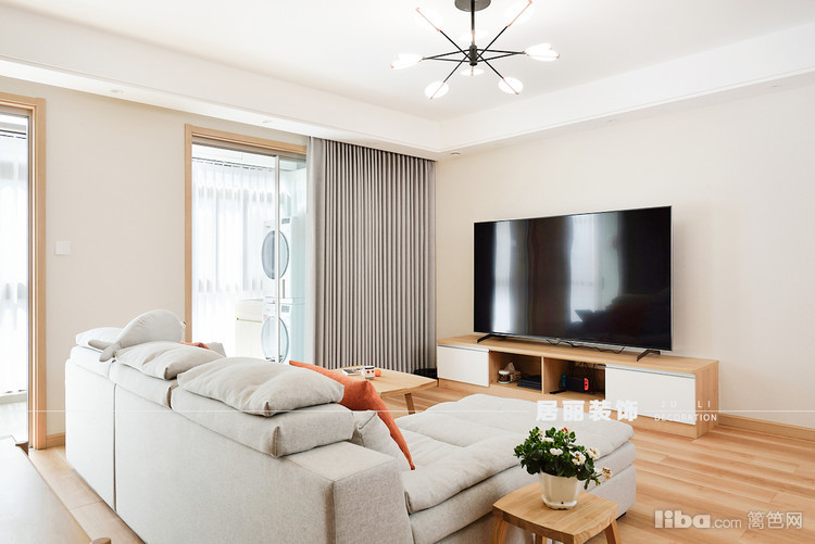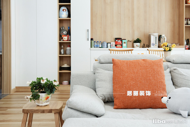 客餐厅一体,使用沙发软隔断,便于家人之间的互动交流。