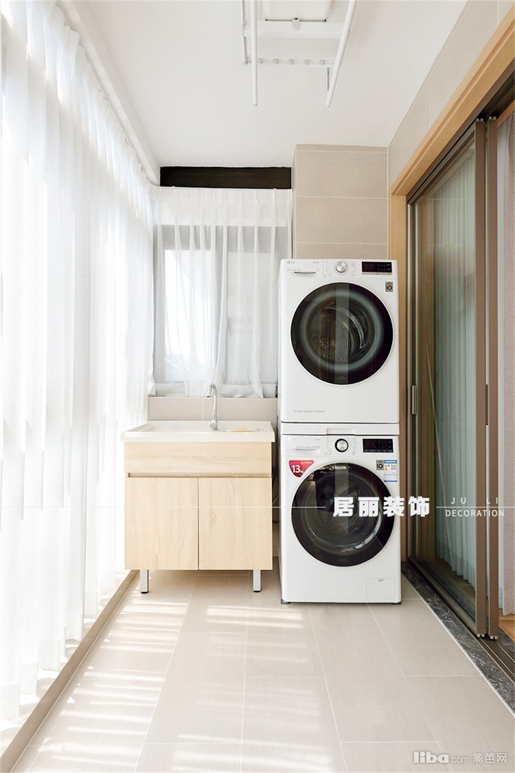 连通大阳台宽敞明亮,洗衣机烘干机搭配洗衣柜。