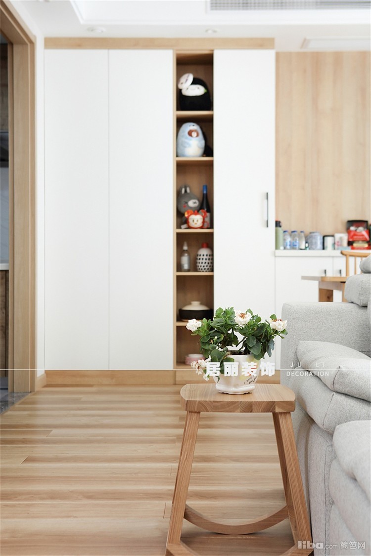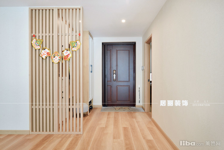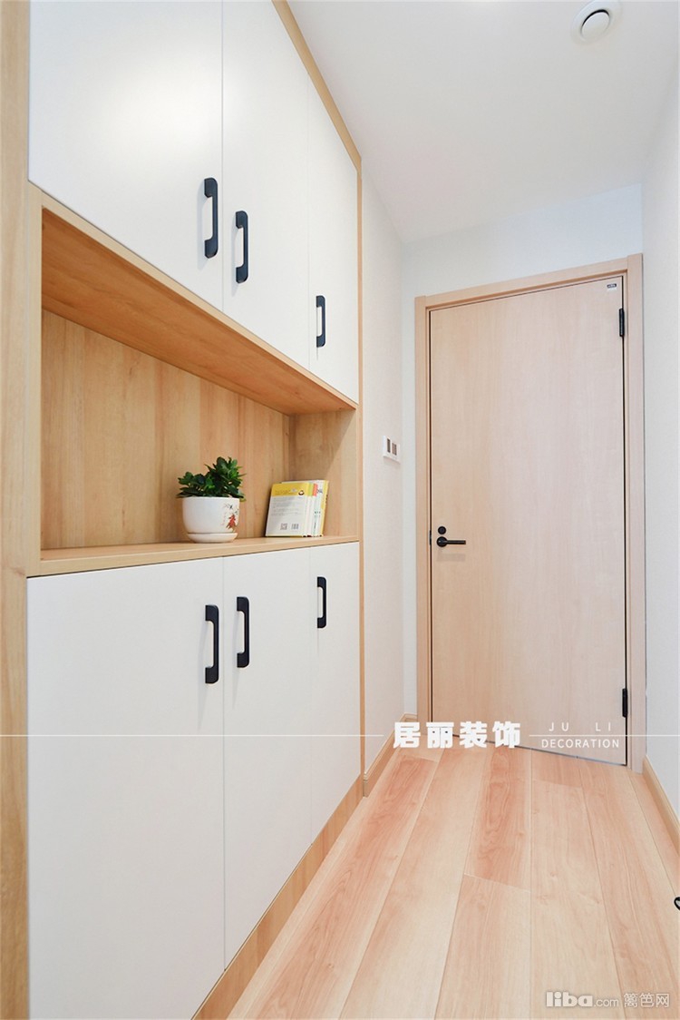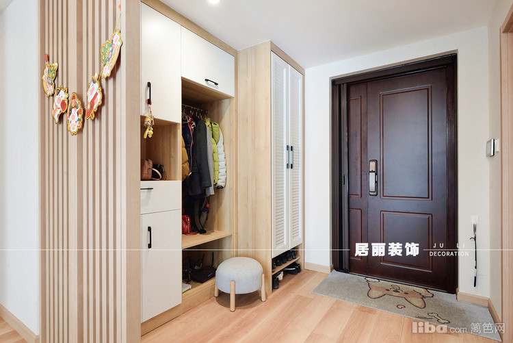 一组鞋帽柜,实现玄关的基础功能,木质边框与室内其他家具达成同色get√。