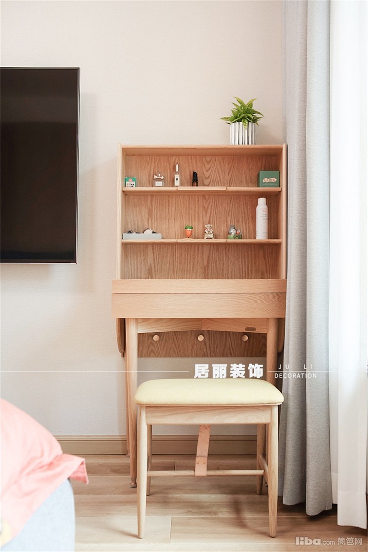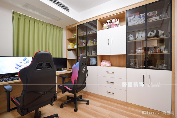 整面书柜满足了主人爱看书喜欢收藏的爱好,双人大书桌让主人可以尽情游戏或办公,增添生活的趣味性。