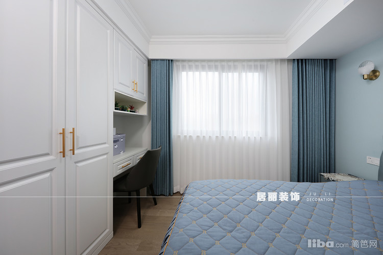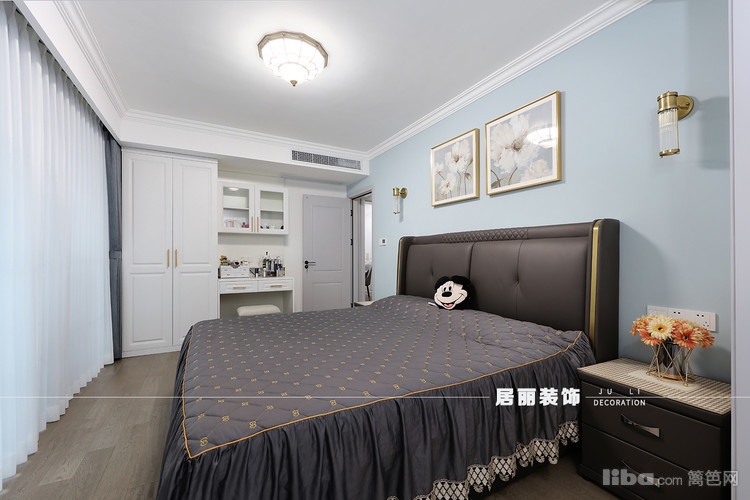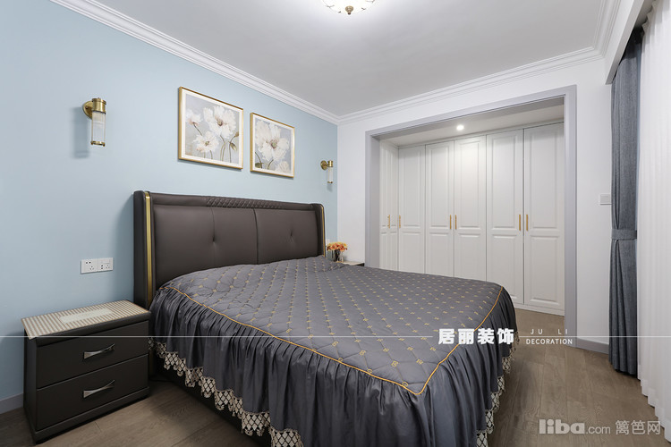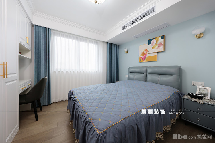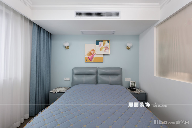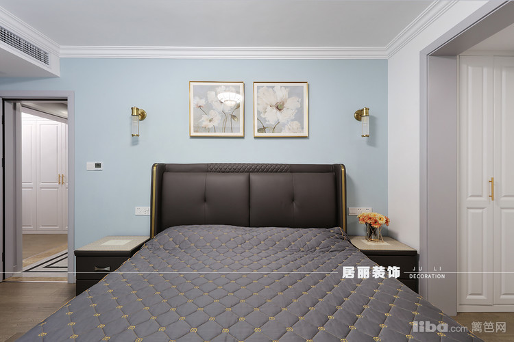 次卧延续客厅风格,莫兰迪色系的搭配,呈现一种独有的轻奢雅致。