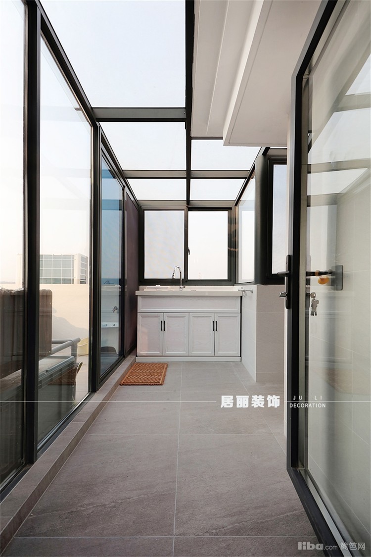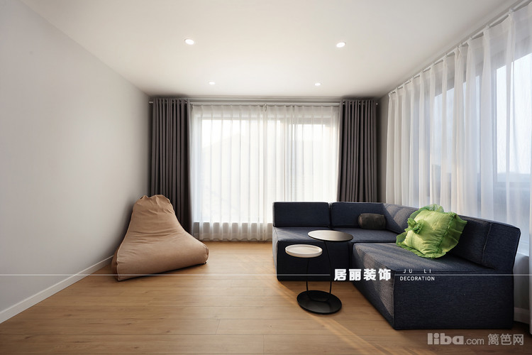 两面落地玻璃将彩光引入客厅,既可以作为客厅休息区、会客区,也可以放置一些运动器材作为一个运动区。
