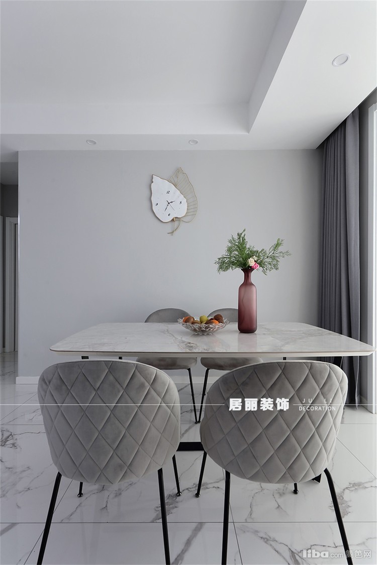 客餐厅原本为L型的手枪厅。客厅和餐厅相对独立,但面积较小,空间利用率也不高。与业主商量后,设计师将客餐厅从L形变为长方形,相对正气。