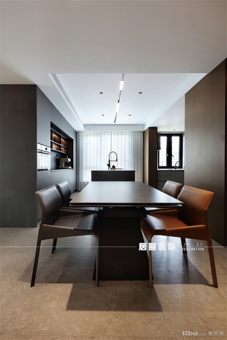 餐厅以岛台和餐桌拼接的形式呈现,岛台的设计,一举多得,它可以是厨房操作空间的一部分,也可以当作餐桌来使用,还能作为工作台。