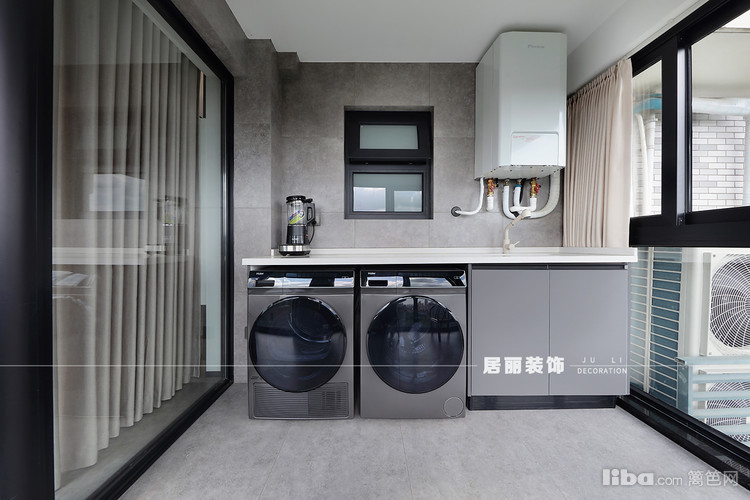 南阳台主要功能是洗衣晾晒,大大的落地窗成为整个客厅的光线来源,也将外围的风景定格其中,镶嵌着户外的光芒,撩开一幕轻柔的窗纱,阳光,炙热可得。