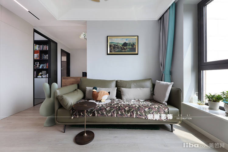客厅作为整个房屋的视觉中心,草木色的绿+温润的木+简约的白,超解压的色系为空间注入了更多的舒适感。