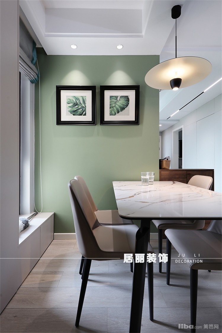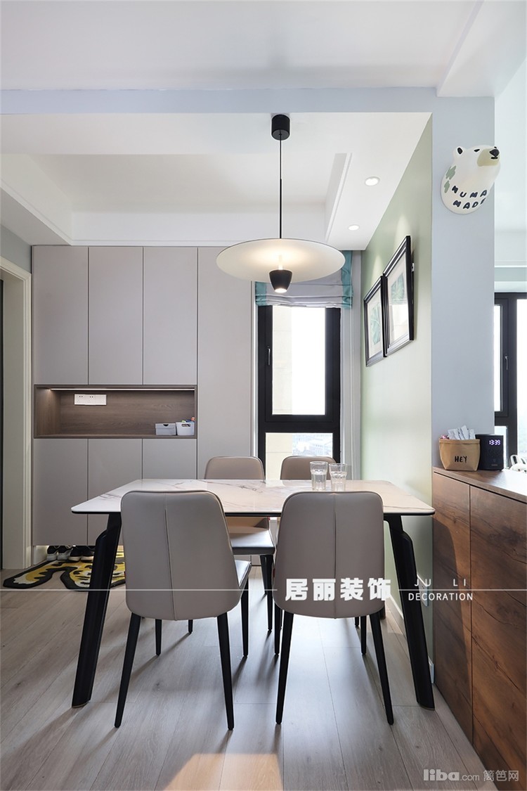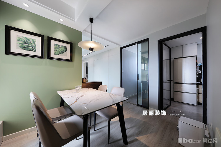 拆除现有餐厅非承重墙,选择用矮柜代替,让视野更加开阔。