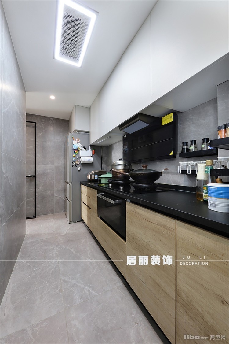 设计师把水槽放置到原设备阳台,扩大厨房空间,洗碗机、蒸烤箱都可以安排上了。