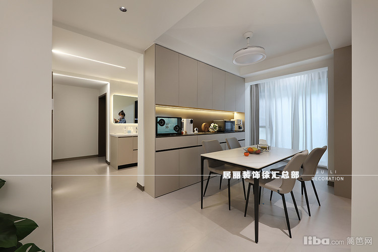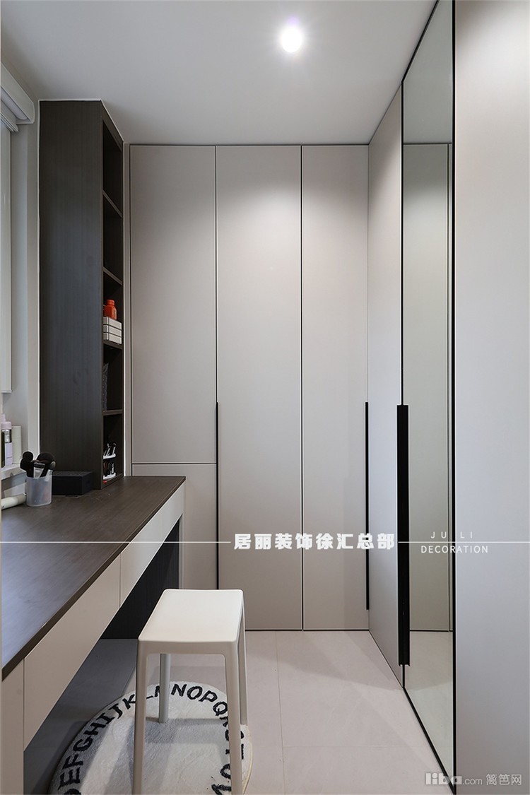 阳台打造储物柜,用于收纳家政用具,嵌入洗烘套组,隐藏在角落保持公区视线清爽,实现颜值功能双丰收。