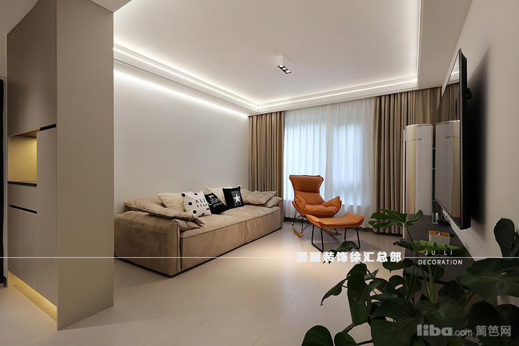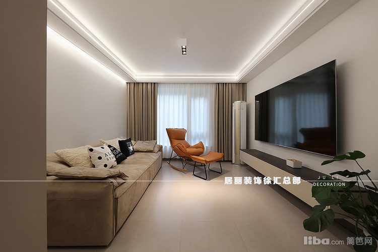 01_客厅 清爽的奶油色调扑面而来,客厅空间精致整洁,色调统一。