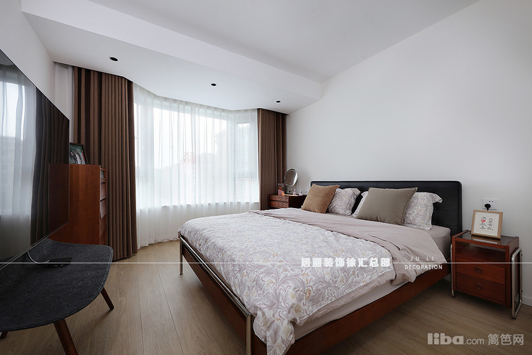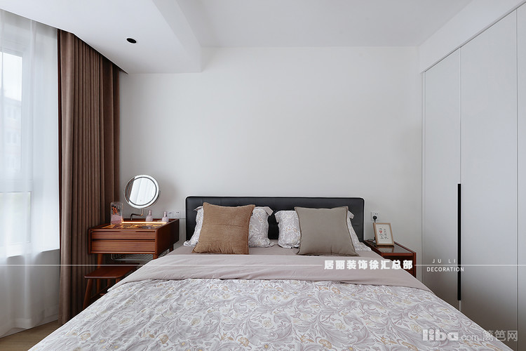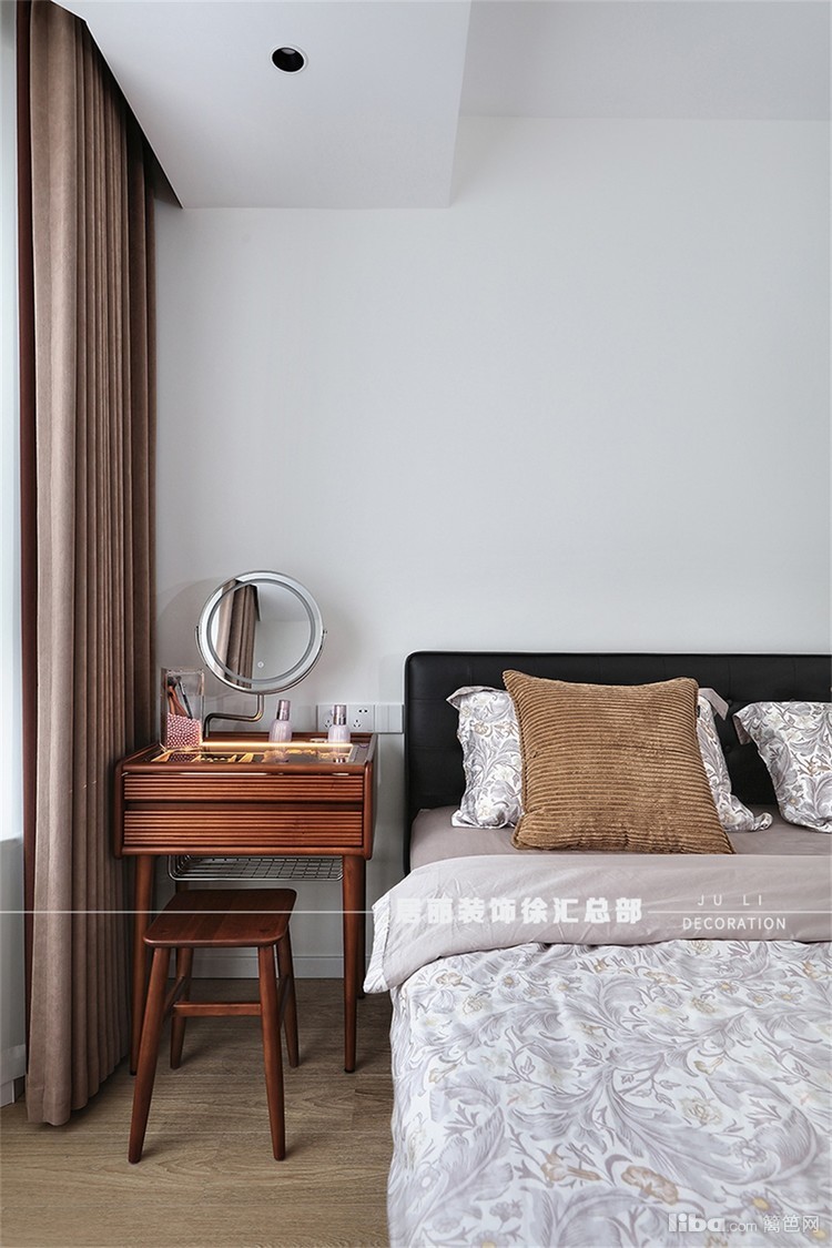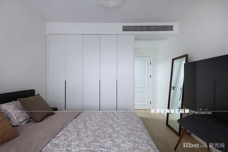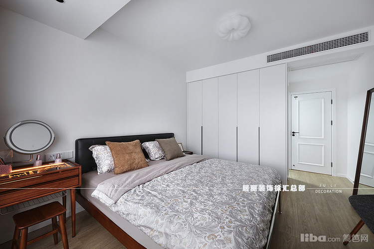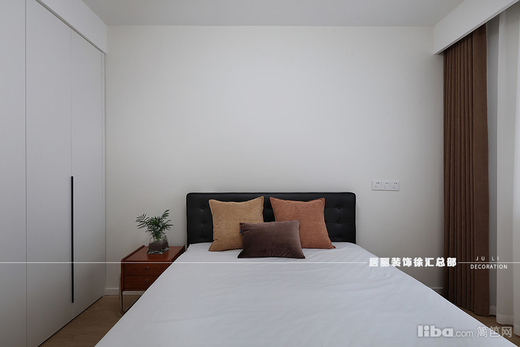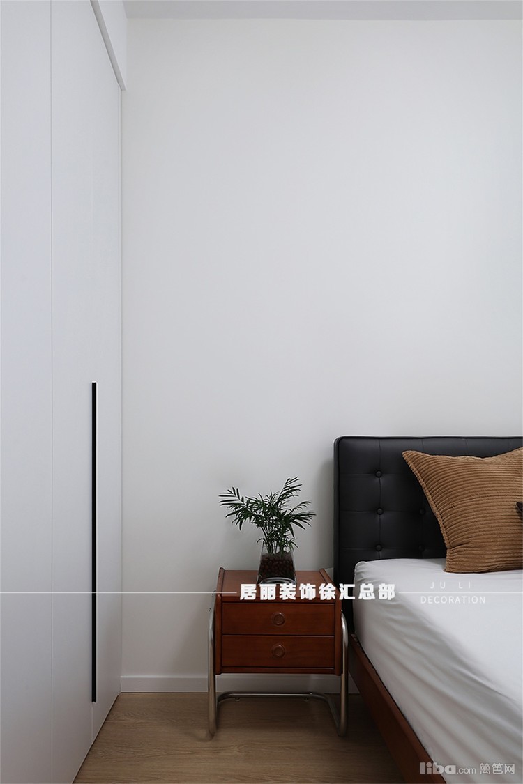 主卧只要求安静,没有用很跳的颜色,用了电视支架,主卧不想要电视可以移到次卧。 次卧延续了主卧的风格,相同的床和床头柜以及墙体柜,方便家里偶尔有客人,主打一个干净简洁实用。