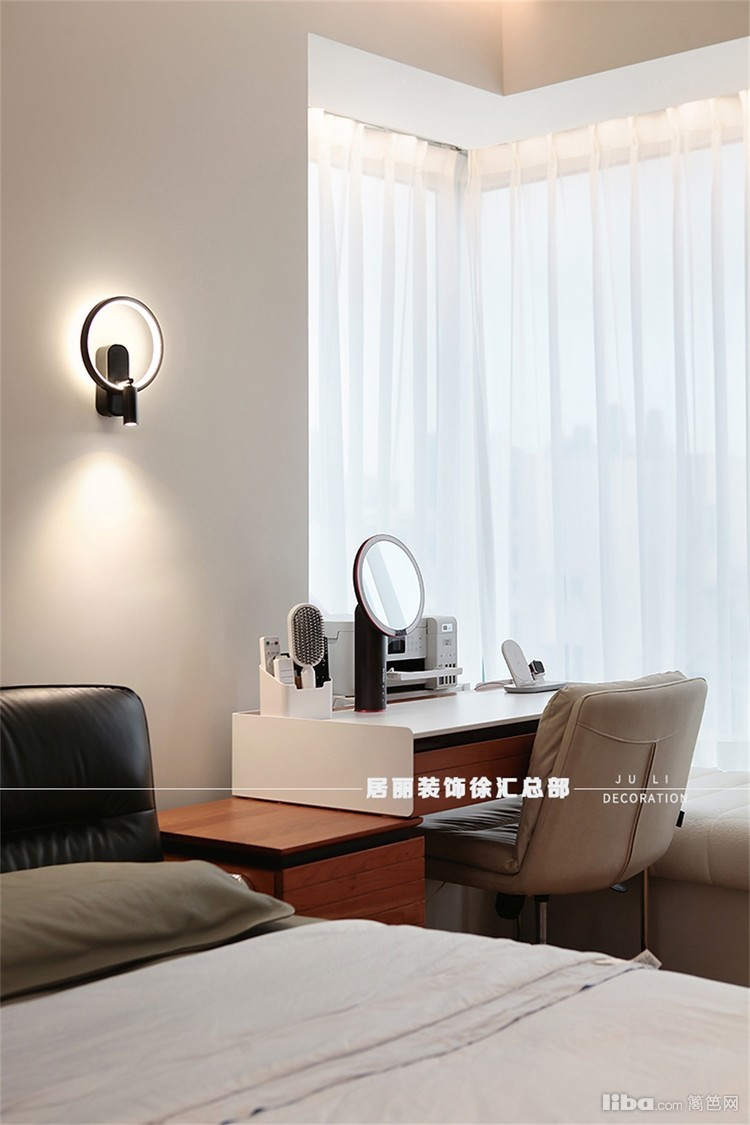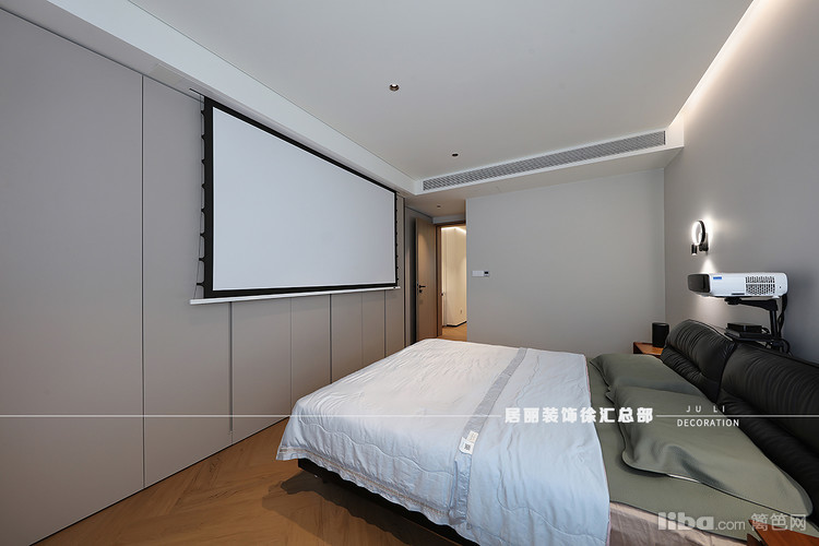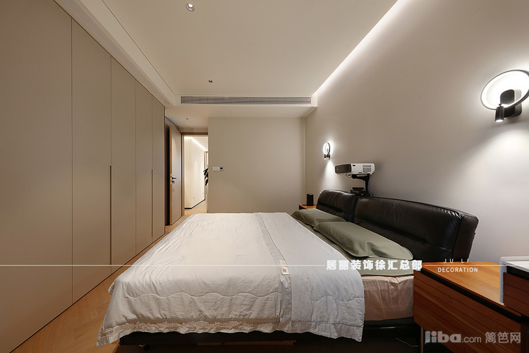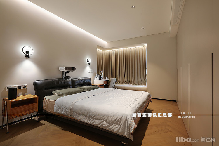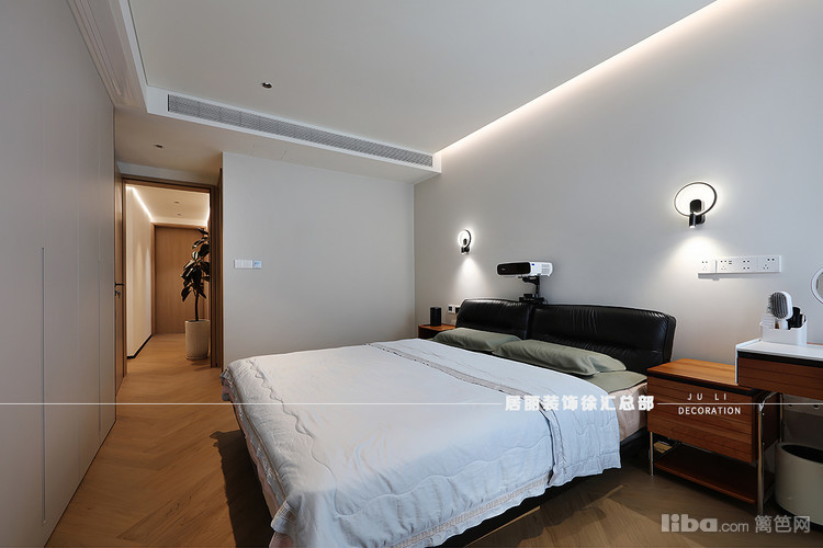 “一张床、两边床头柜”,主卧尊崇简约风格,以静谧的氛围呈现。