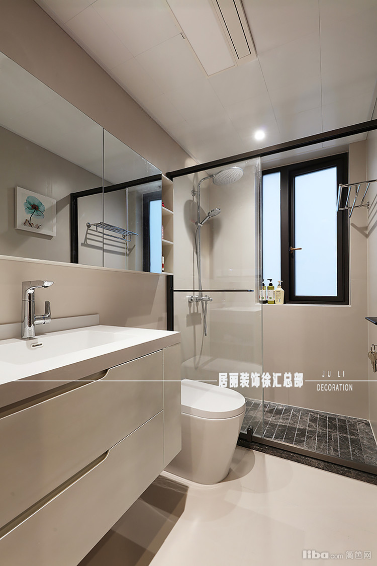 台盆 洗烘叠加 储物柜 马桶 淋浴 动线一气呵成 既满足功能 也兼并美观。