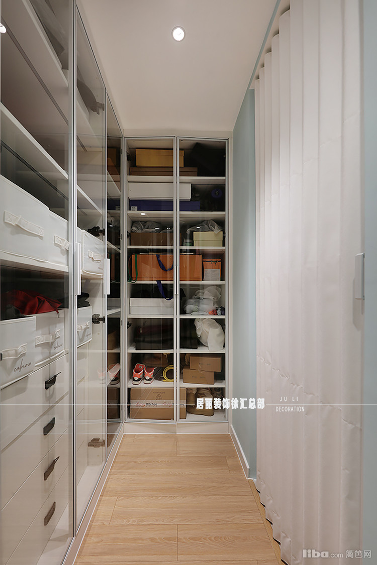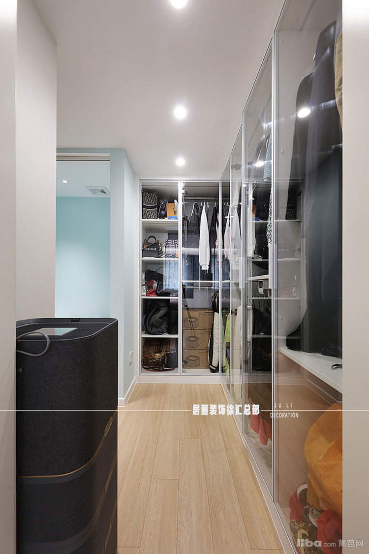 大衣柜后面是女主人心心念念的衣帽间,这可是拆了大半个卫生间才换来的宝贵空间