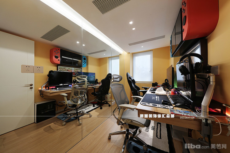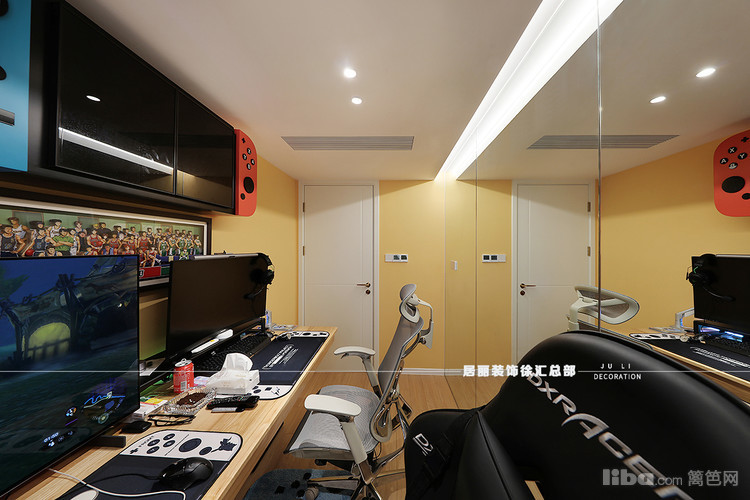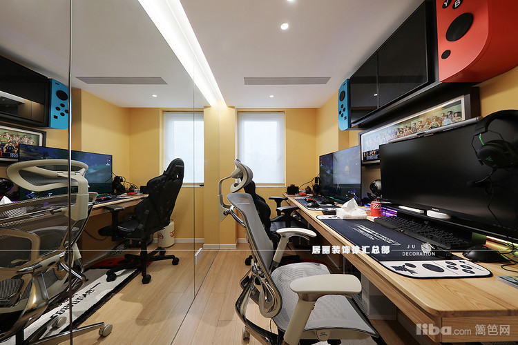 电竞书房则配上两台超大台式电脑,既富有格调又满足主人的娱乐休闲