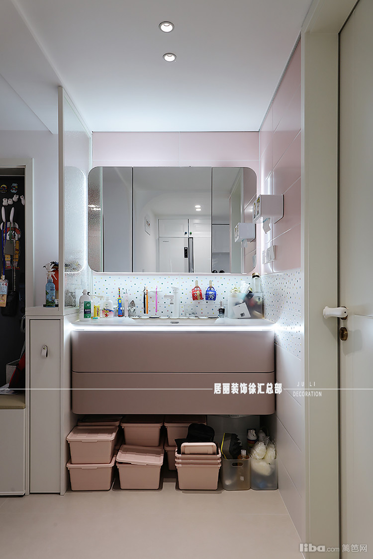 配上一面镜子做背景,显得空间格外宽敞明亮