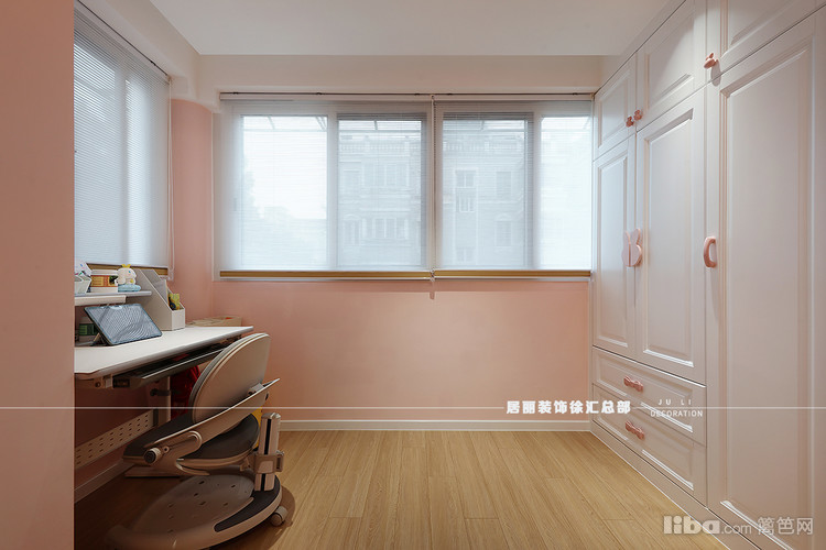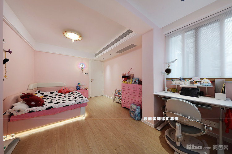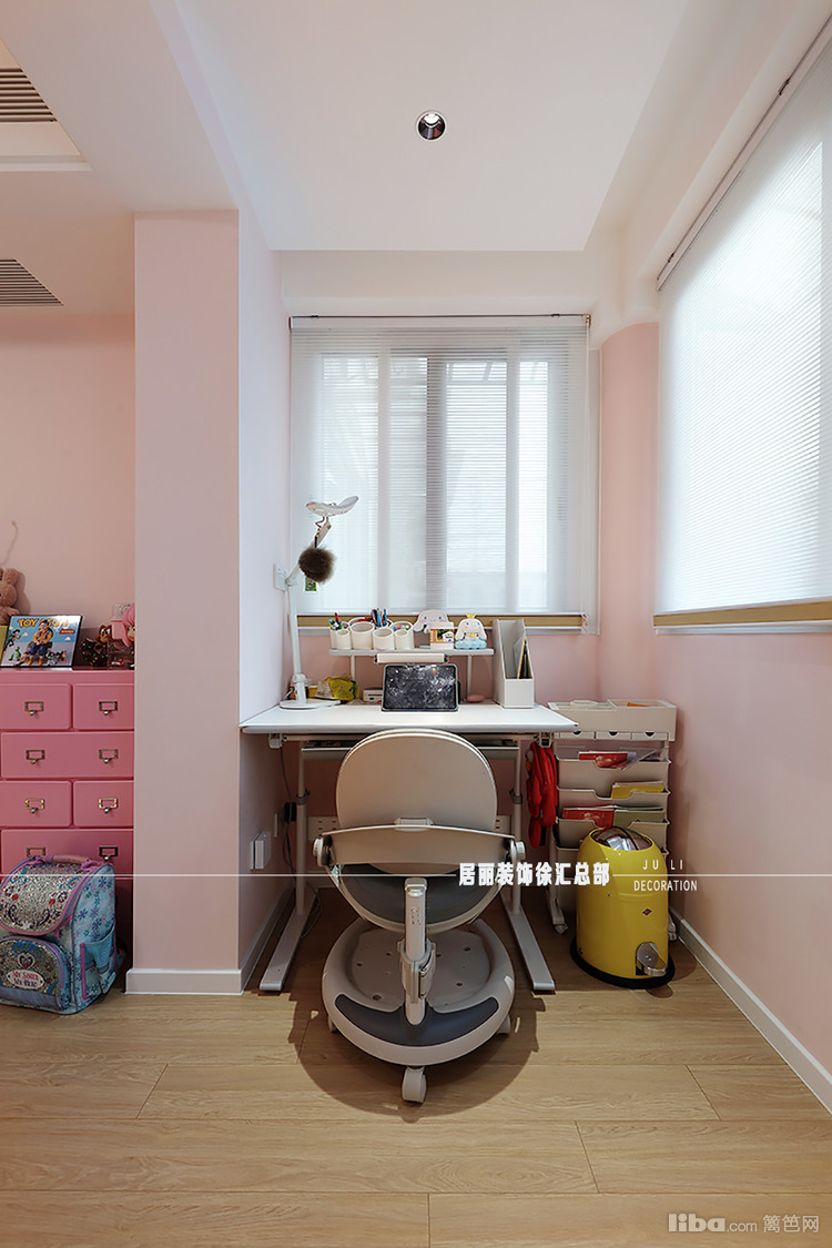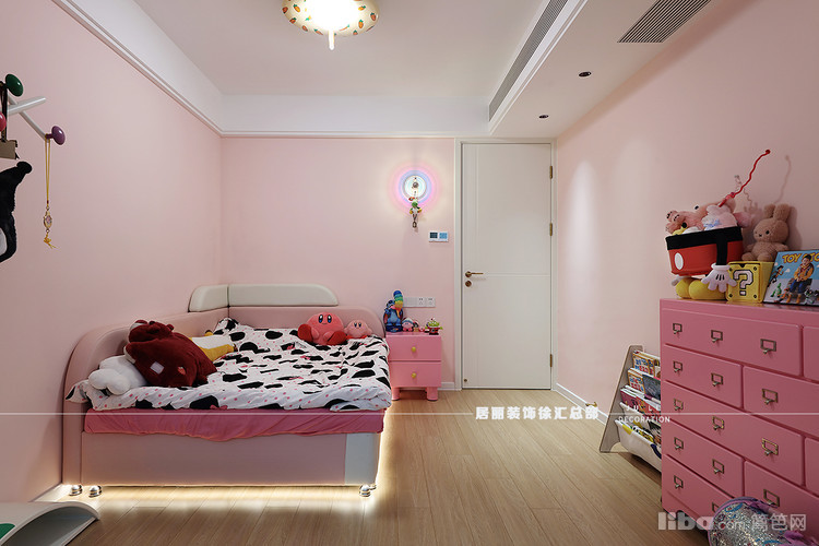 女儿房女儿是温暖的粉色调,依靠墙壁而置的儿童床,女主人的温柔气质就这样潜移默化的传递给了下一代