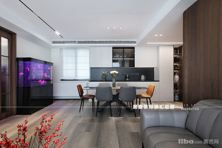 黑色的鱼缸更像一幅游动的装饰画 餐厅不止满足于一日三餐 要温馨也要有质感。