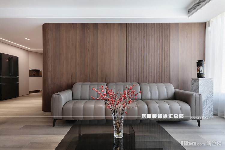 皮质沙发加黑玻茶几 塑造温润柔和、细腻平滑的空间感。