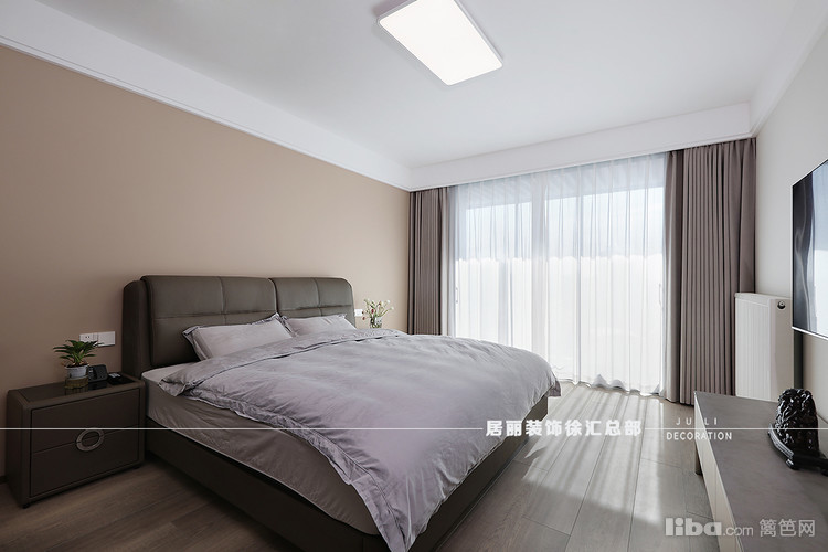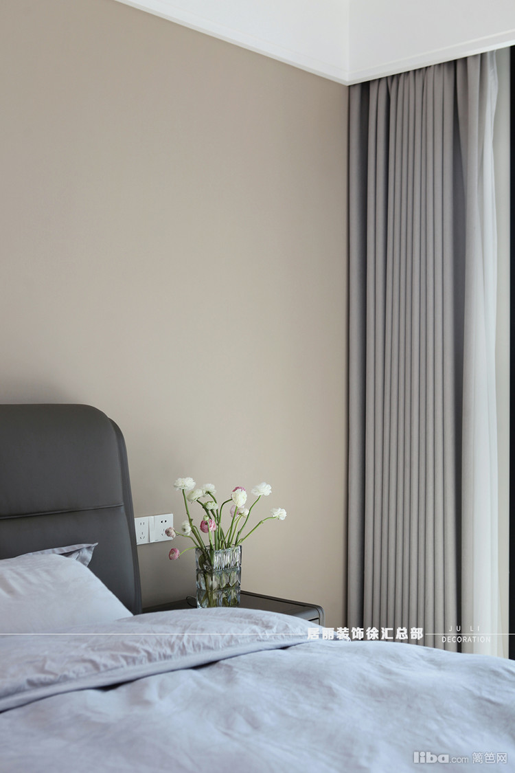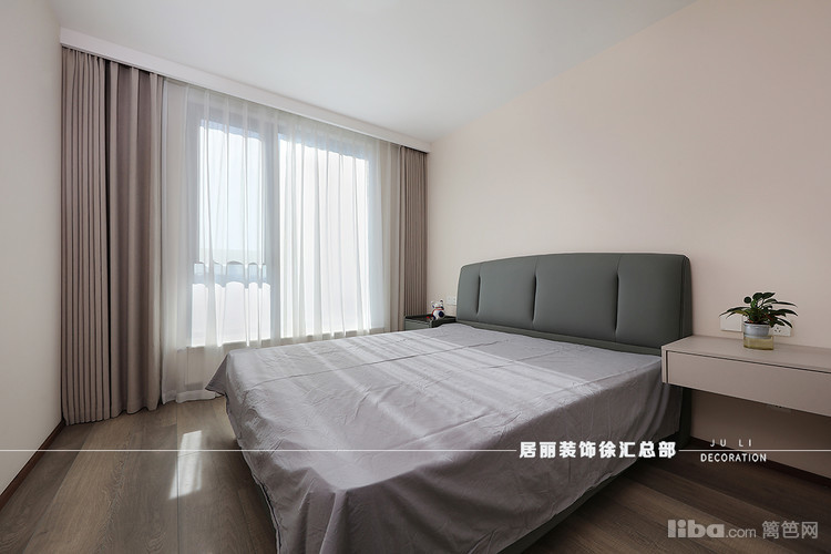 主卧的空间颜色搭配简单 干净利落 墙面采取乳胶漆背景色 木地板配色协调