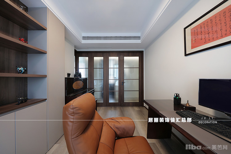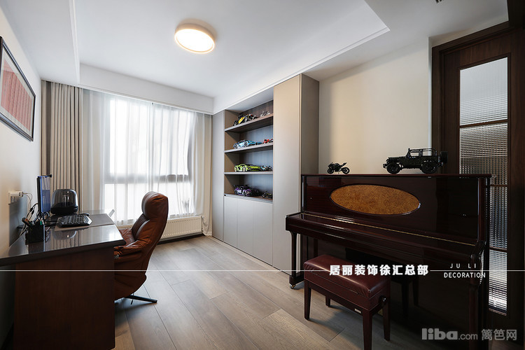 书房的房门采用和木饰面一样的色系 风格统一 木质的书桌