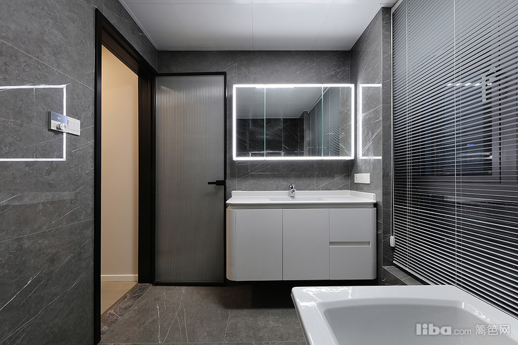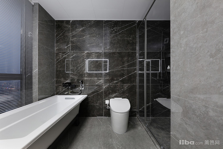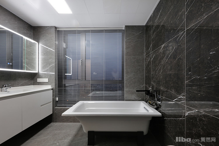 金属与石材的交织干净利落,当疲惫一天回到家躺在浴缸里看向窗外的夜景 放松惬意