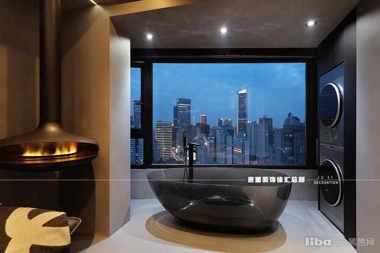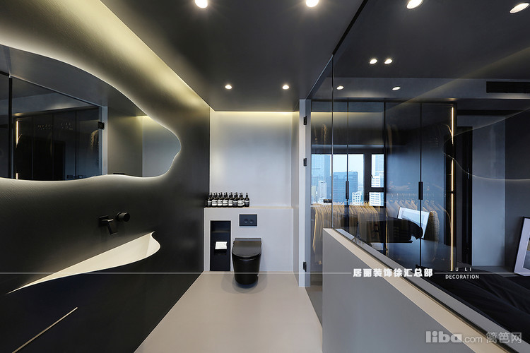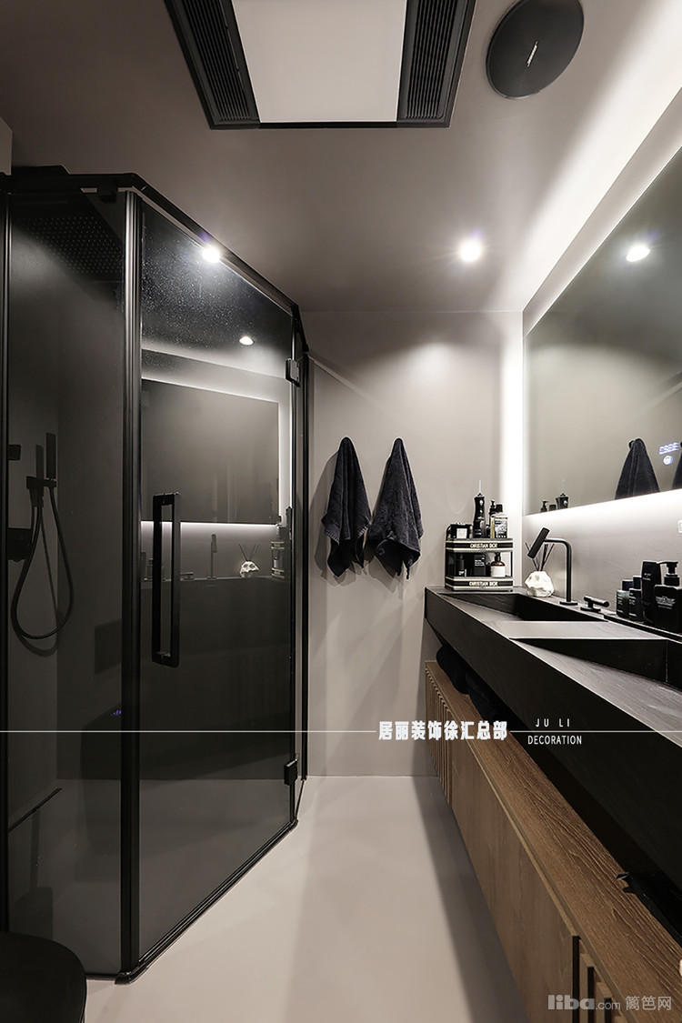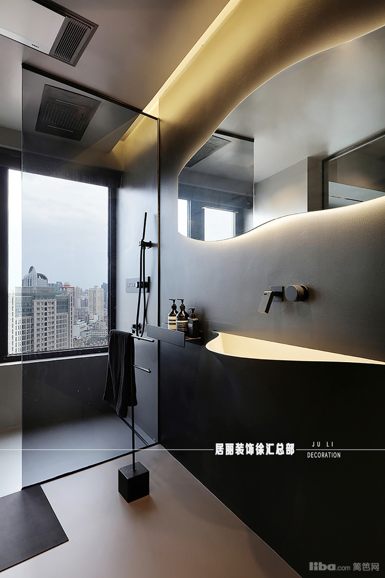 卫生间整体采用微水泥,墙地一体整体感很强,自流平效果拉满。