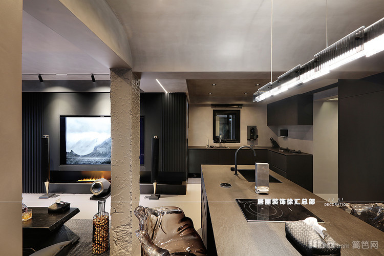 黑色岩板赋予生活节奏的切换,让日常如石材纹理一般,随性而不呆板