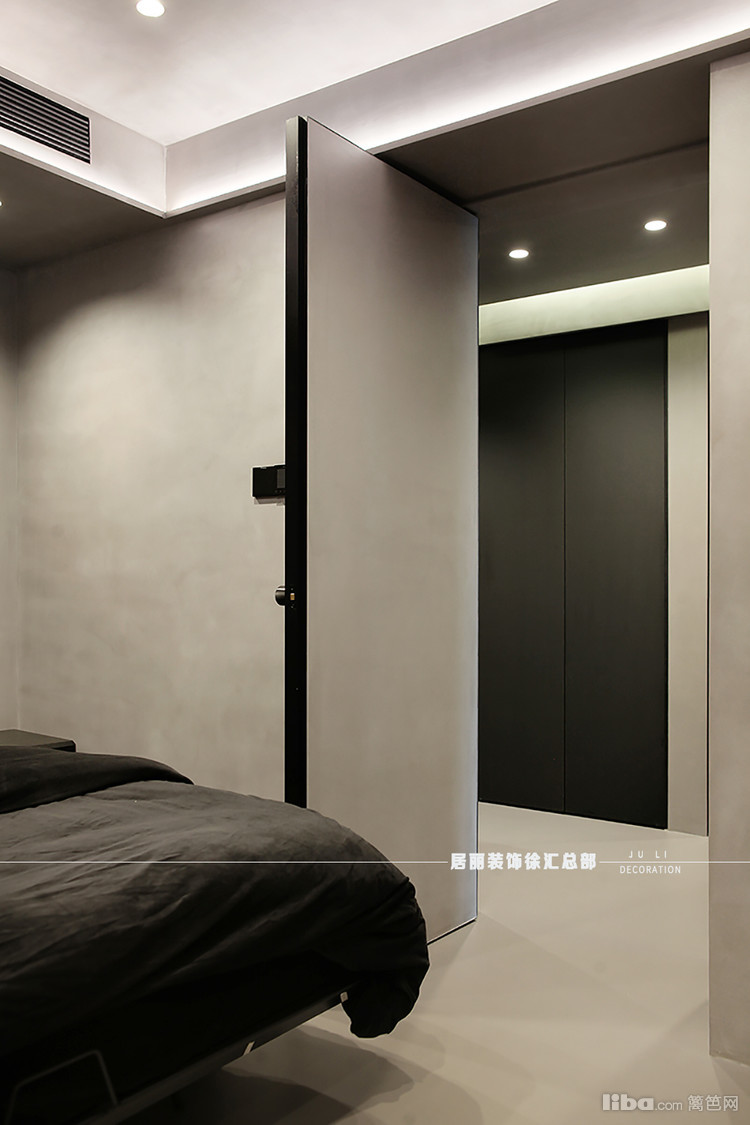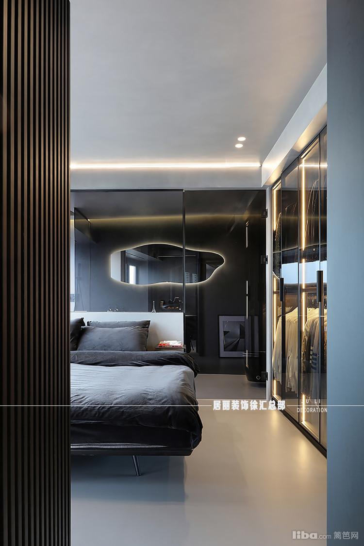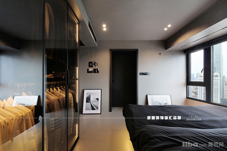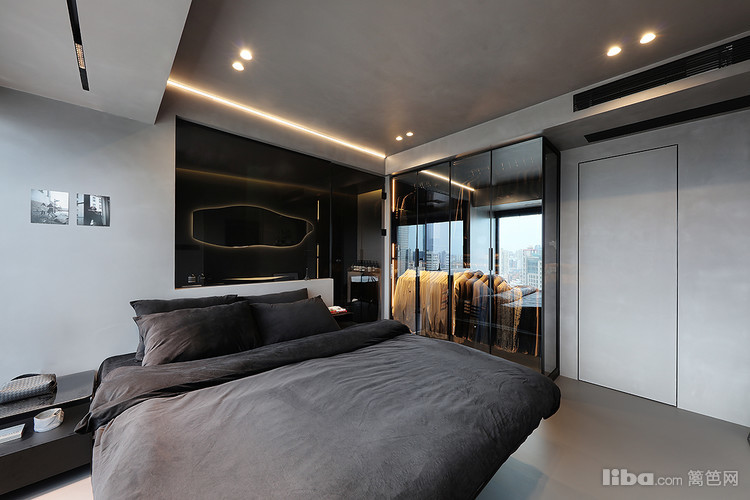 金属玻璃的衣柜等材料的运用,不仅增添了空间的质感,更显得空间简通透。